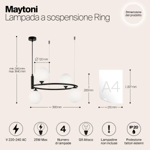 Допускается отличие страны-изготовителя, указанной в характеристиках. Линии производства могут находиться в нескольких государствах. Это не влияет на качество изготовления товара: все заводы данного бренда работают по общим стандартам, а готовые изделия проходят соответствующий контроль.Германия Коллекция Ring ЦветЦвет арматуры Черный Цвет Черный Материал арматуры Металл Цвет плафона Белый Материал плафона Стекло Форма плафона Шар РазмерыВысота (мм) 1810 Длина (мм) 390 Высота минимальная (мм) 340 Ширина (мм) 435 ЭлектрикаКоличество ламп (шт) 4 Цоколь G9 Лампочки в комплекте Нет в комплекте Мощность лампы (Вт) 25 Напряжение (В) 220 Дополнительная информацияСпособ крепления Планка Степень защиты (IP) IP20 Вес (Кг) 1,79 Тип подвеса На тросах Количество подвесов Одиночный подвес -