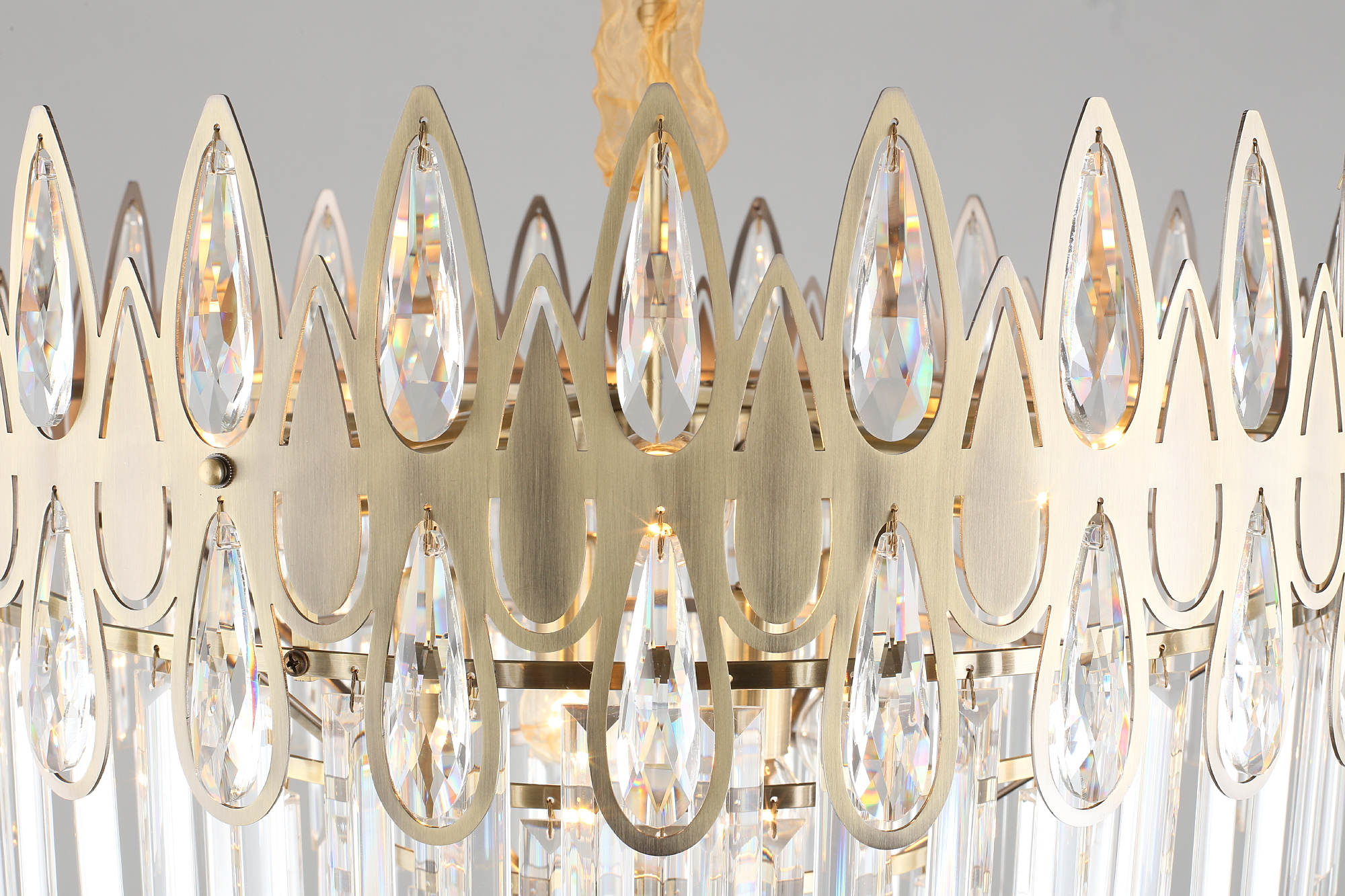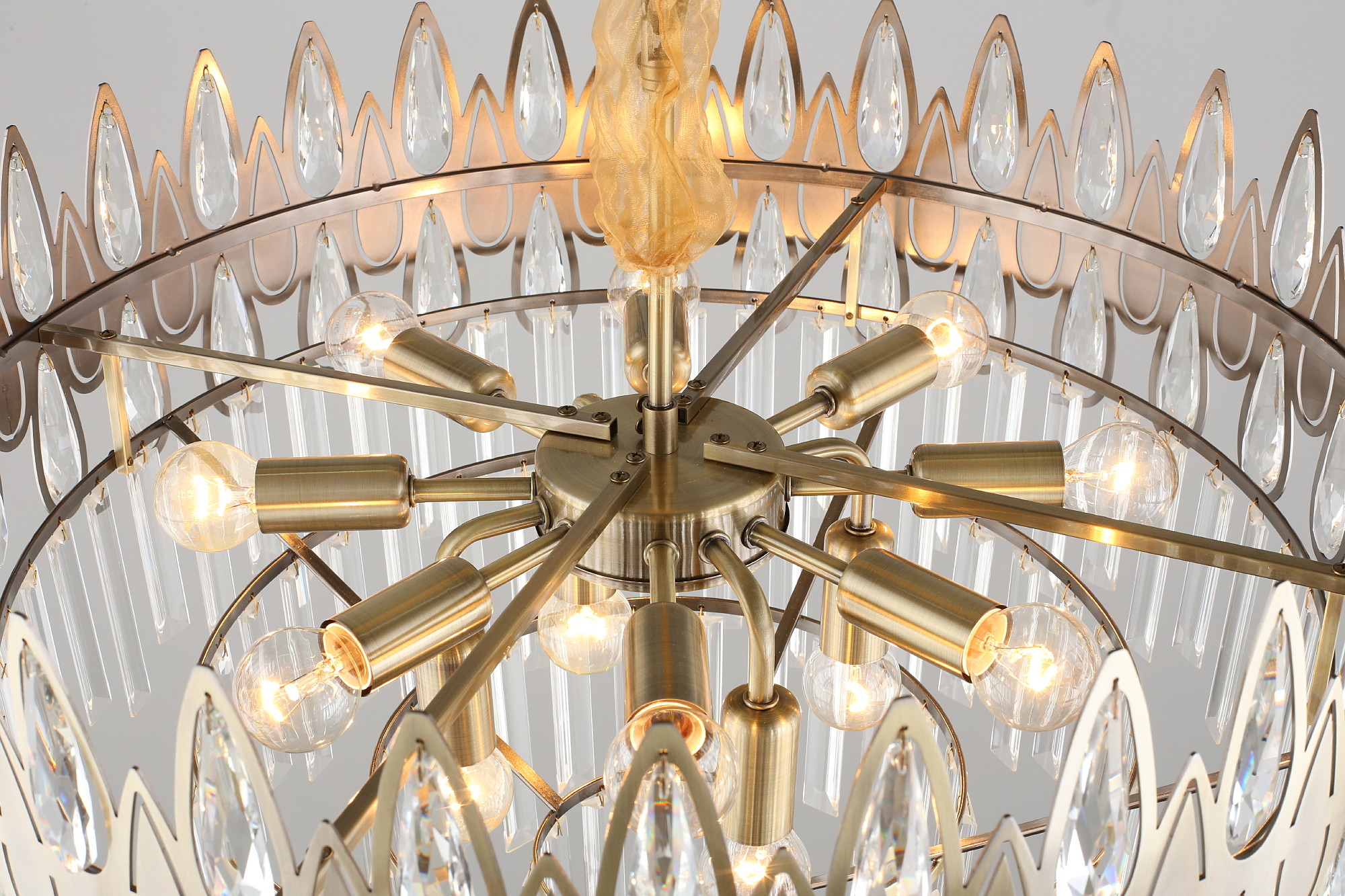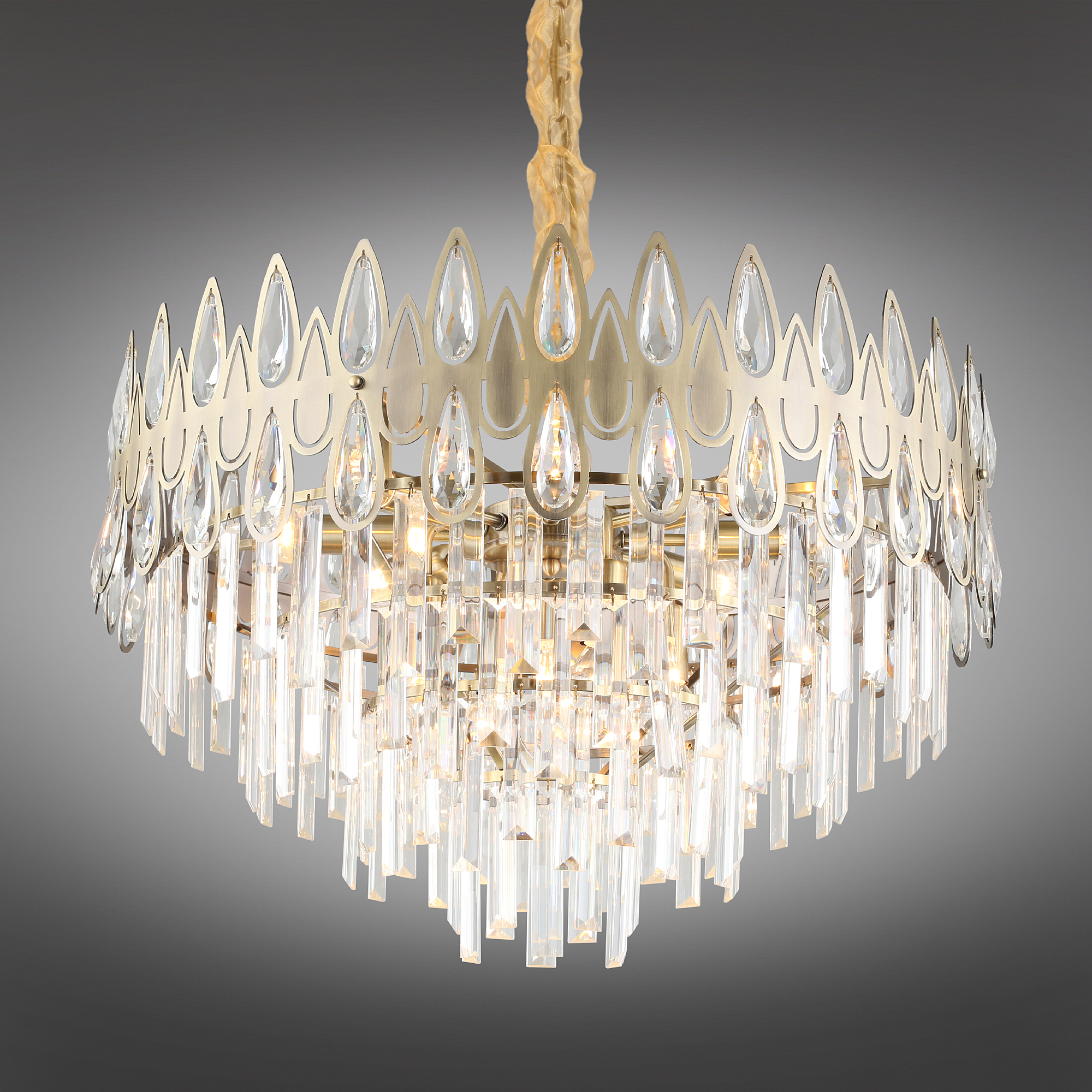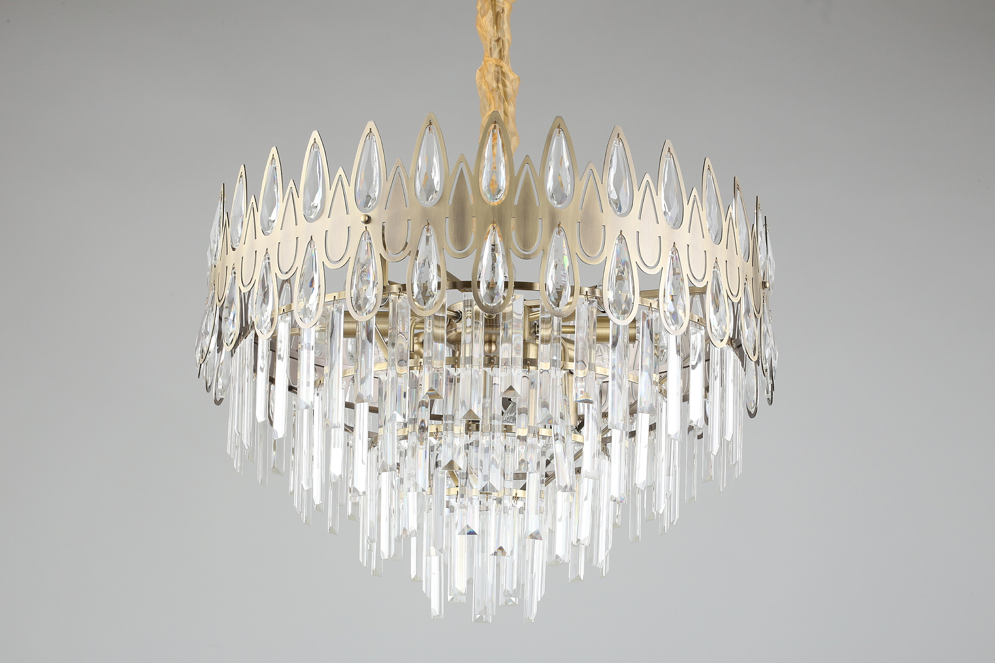 Допускается отличие страны-изготовителя, указанной в характеристиках. Линии производства могут находиться в нескольких государствах. Это не влияет на качество изготовления товара: все заводы данного бренда работают по общим стандартам, а готовые изделия проходят соответствующий контроль.Китай Коллекция Riposto ЦветЦвет арматуры Золото Цвет Золото Материал арматуры Металл Материал декора Хрусталь РазмерыВысота (мм) 1200 Диаметр (мм) 630 Высота минимальная (мм) 750 Ширина (мм) 630 ЭлектрикаКоличество ламп (шт) 12 Цоколь E14 Лампочки в комплекте Нет в комплекте Мощность лампы (Вт) 40 Общая мощность (Вт) 480 Световой поток 5040 Дополнительная информацияСпособ крепления Крюк Степень защиты (IP) IP20 Вес (Кг) 9.2 Тип подвеса На цепи -