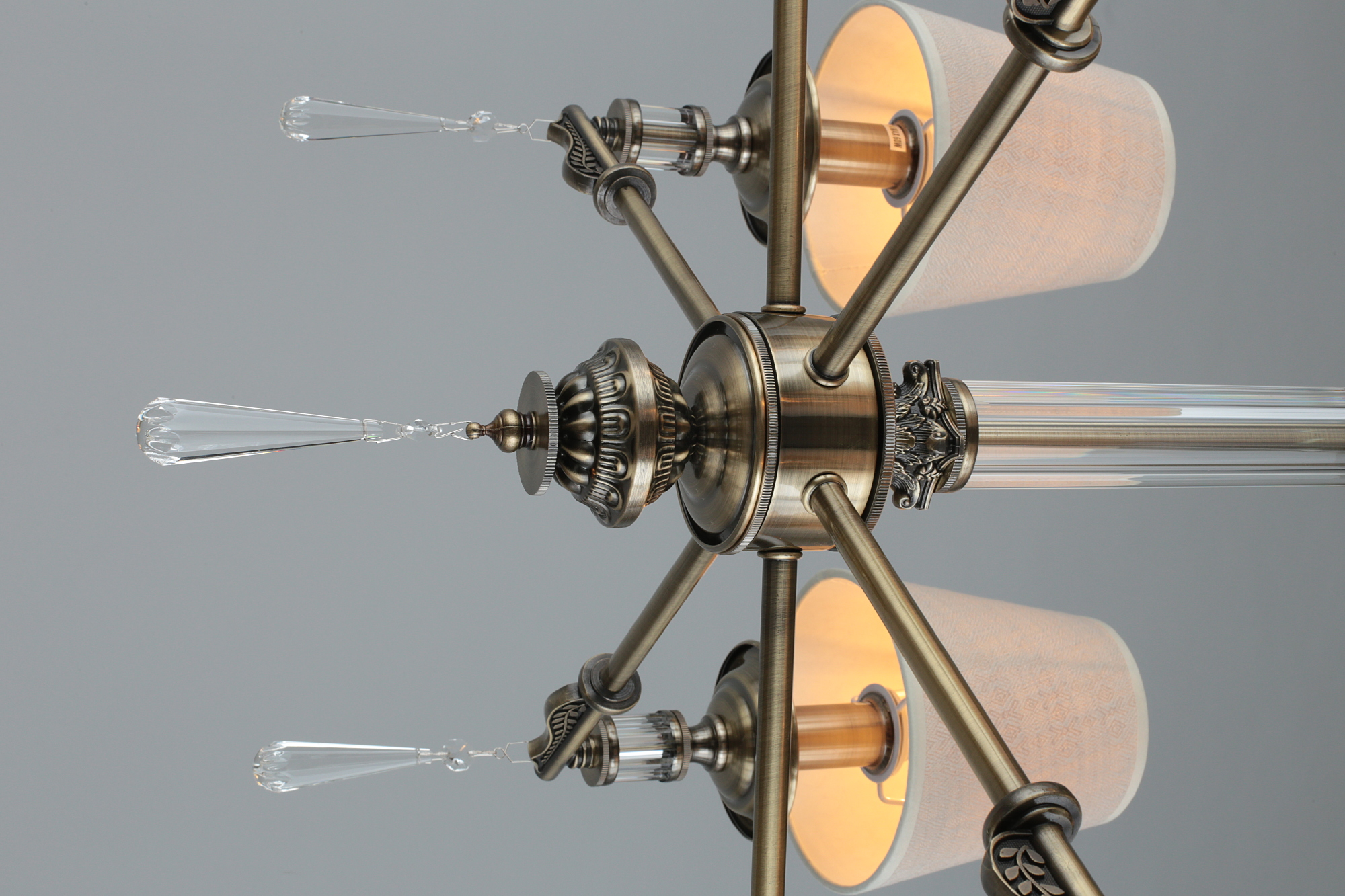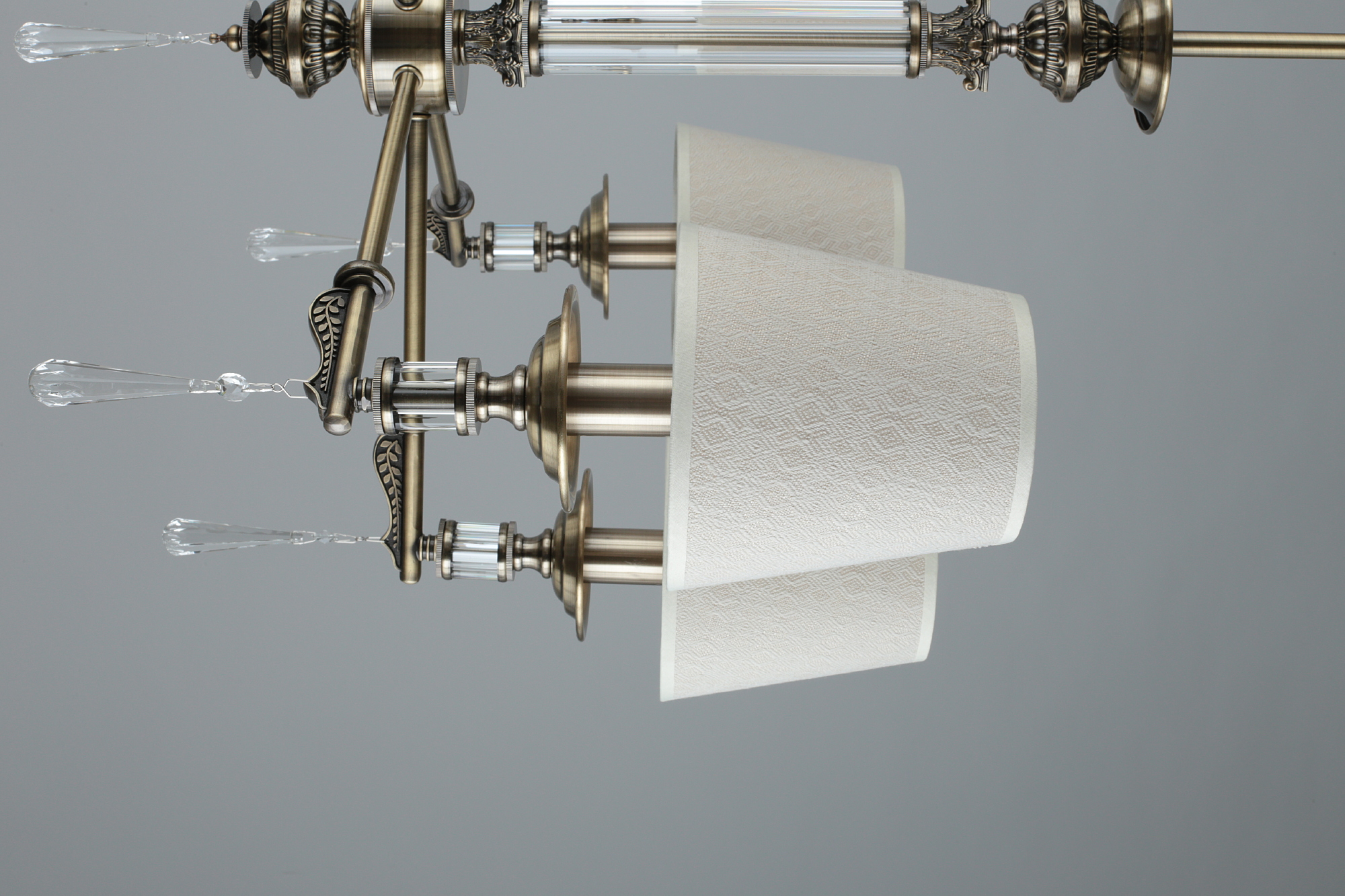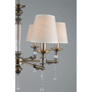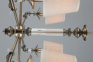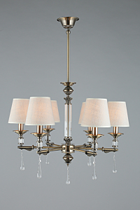 Допускается отличие страны-изготовителя, указанной в характеристиках. Линии производства могут находиться в нескольких государствах. Это не влияет на качество изготовления товара: все заводы данного бренда работают по общим стандартам, а готовые изделия проходят соответствующий контроль.Китай Коллекция Rivoli ЦветЦвет арматуры Старая Бронза Цвет Бронза Материал арматуры Металл Цвет декора прозрачный Цвет плафона кремовый Материал декора Хрусталь Материал плафона Ткань РазмерыВысота (мм) 1200 Диаметр (мм) 750 Высота минимальная (мм) 800 Ширина (мм) 750 ЭлектрикаКоличество ламп (шт) 6 Цоколь E14 Лампочки в комплекте Нет в комплекте Мощность лампы (Вт) 40 Общая мощность (Вт) 240 Напряжение (В) 220 Световой поток 2520 Дополнительная информацияСпособ крепления Крюк Вес (Кг) 4.1 -