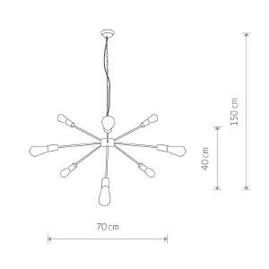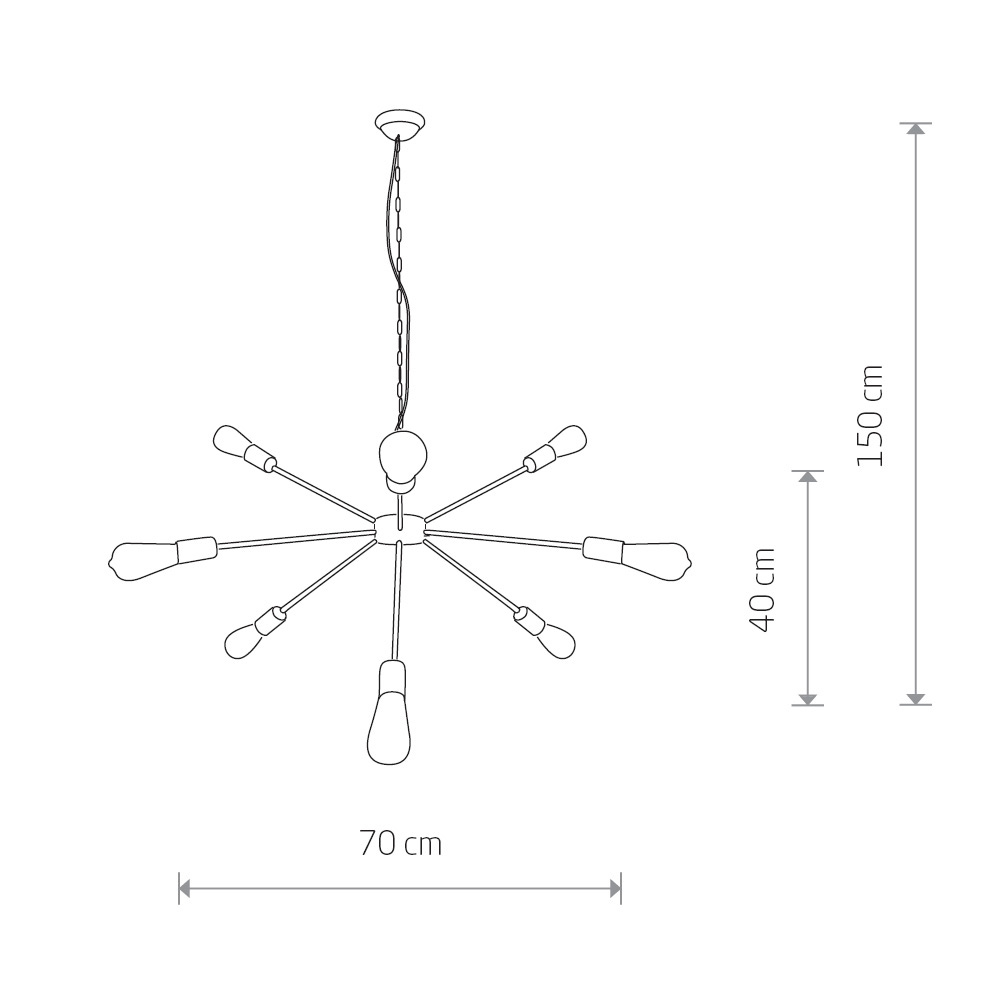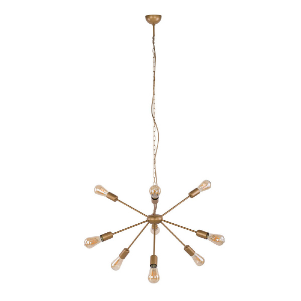 Допускается отличие страны-изготовителя, указанной в характеристиках. Линии производства могут находиться в нескольких государствах. Это не влияет на качество изготовления товара: все заводы данного бренда работают по общим стандартам, а готовые изделия проходят соответствующий контроль.Польша Коллекция Rod ЦветЦвет арматуры Золото Цвет Золото Материал арматуры Сталь Цвет плафона золото Материал плафона Металл РазмерыВысота (мм) 1470 Диаметр (мм) 700 Высота минимальная (мм) 400 ЭлектрикаКоличество ламп (шт) 9 Цоколь E27 Тип лампы Накаливания Мощность лампы (Вт) 60 Общая мощность (Вт) 540 Напряжение (В) 220 Дополнительная информацияСтепень защиты (IP) IP20 Место установки на потолок Вес (Кг) 1,95 Тип подвеса На цепи -