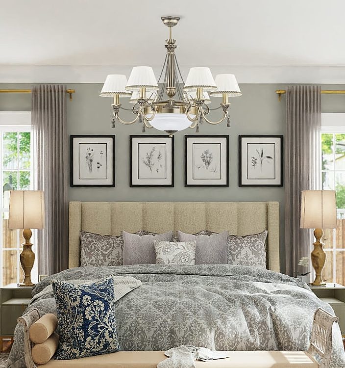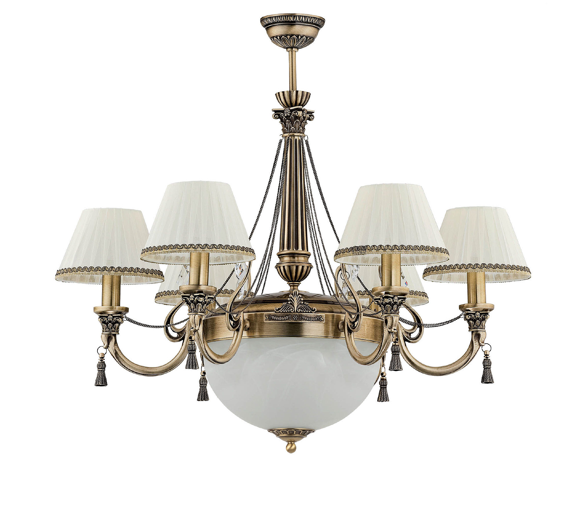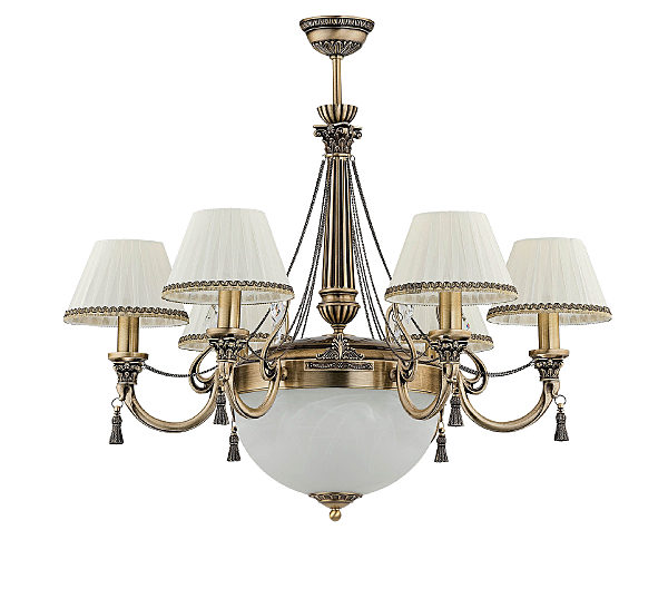 Люстра ROM-ZW-6+1 (P/A) - семирожковая модель с одним центральным источником и шестью рожками. Подходит для гостиных и столовых, где требуется акцентное, но мягкое освещение. Патинированная отделка делает модель благородной и спокойной по восприятию.