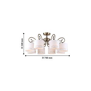 Допускается отличие страны-изготовителя, указанной в характеристиках. Линии производства могут находиться в нескольких государствах. Это не влияет на качество изготовления товара: все заводы данного бренда работают по общим стандартам, а готовые изделия проходят соответствующий контроль.Германия Коллекция Romani ЦветЦвет арматуры Античная бронза Цвет Бронза Материал арматуры Металл Цвет плафона Белый Материал плафона Ткань РазмерыВысота (мм) 340 Диаметр (мм) 740 Ширина (мм) 740 ЭлектрикаКоличество ламп (шт) 8 Цоколь E14 Мощность лампы (Вт) 40 Напряжение (В) 220 Дополнительная информацияСпособ крепления Планка Вес (Кг) 3 -