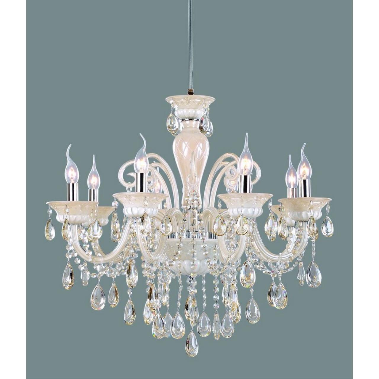 Допускается отличие страны-изготовителя, указанной в характеристиках. Линии производства могут находиться в нескольких государствах. Это не влияет на качество изготовления товара: все заводы данного бренда работают по общим стандартам, а готовые изделия проходят соответствующий контроль.Китай Коллекция Teramo ЦветЦвет арматуры Хром, Бежевый Цвет Бежевый Материал арматуры Металл, Стекло Цвет декора прозрачный Материал декора Хрусталь РазмерыВысота (мм) 1100 Диаметр (мм) 750 Высота минимальная (мм) 800 Ширина (мм) 750 Возможность регулировки высоты Есть ЭлектрикаКоличество ламп (шт) 8 Цоколь E14 Тип лампы Светодиодная, Энергосберегающая (КЛЛ) Лампочки в комплекте Нет в комплекте Возможность подключение диммера Есть Мощность лампы (Вт) 40W Общая мощность (Вт) 320 Напряжение (В) 220 Световой поток 3360 Дополнительная информацияСпособ крепления Планка Степень защиты (IP) IP20 Вес (Кг) 9.6 Тип подвеса На цепи -