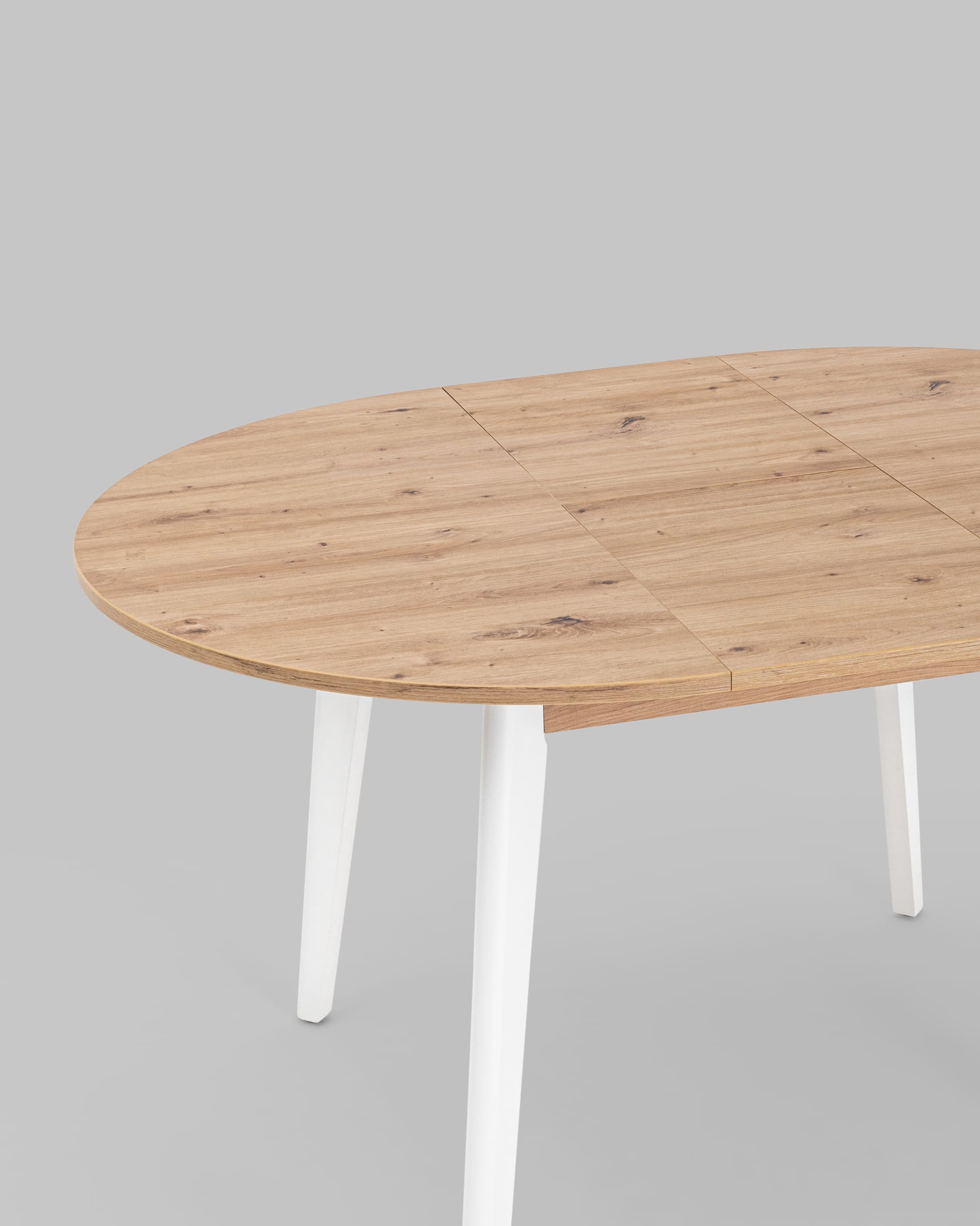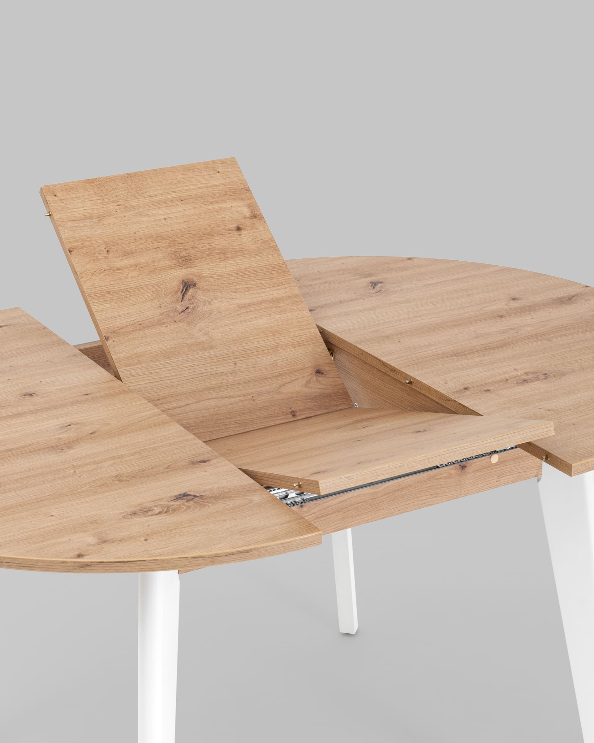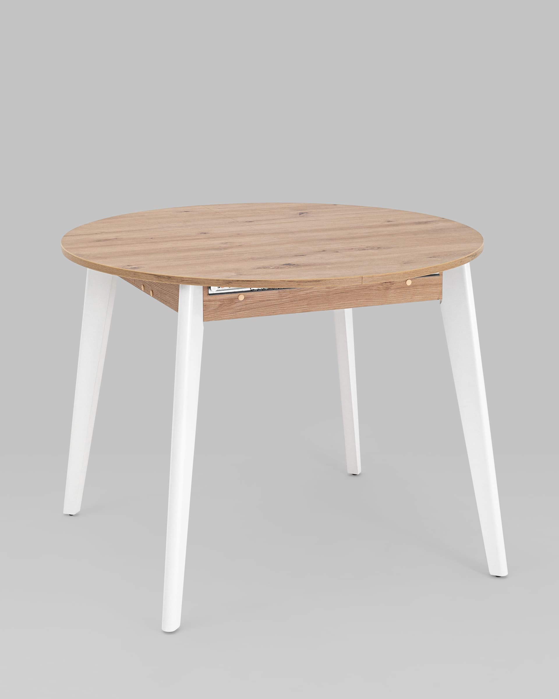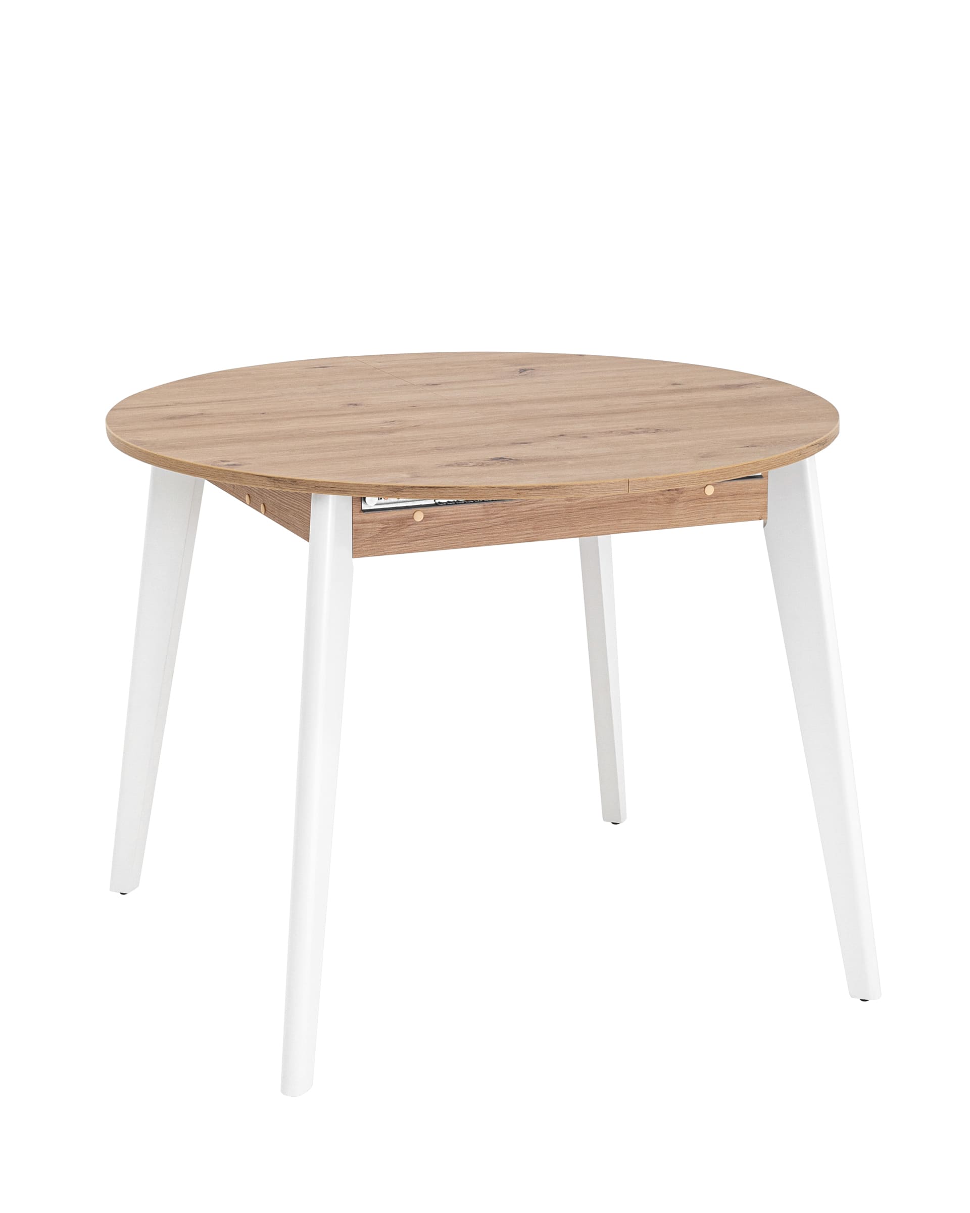 Стол обеденный Rondo диаметр 100 см дуб/белый, раскладывается до 135 см