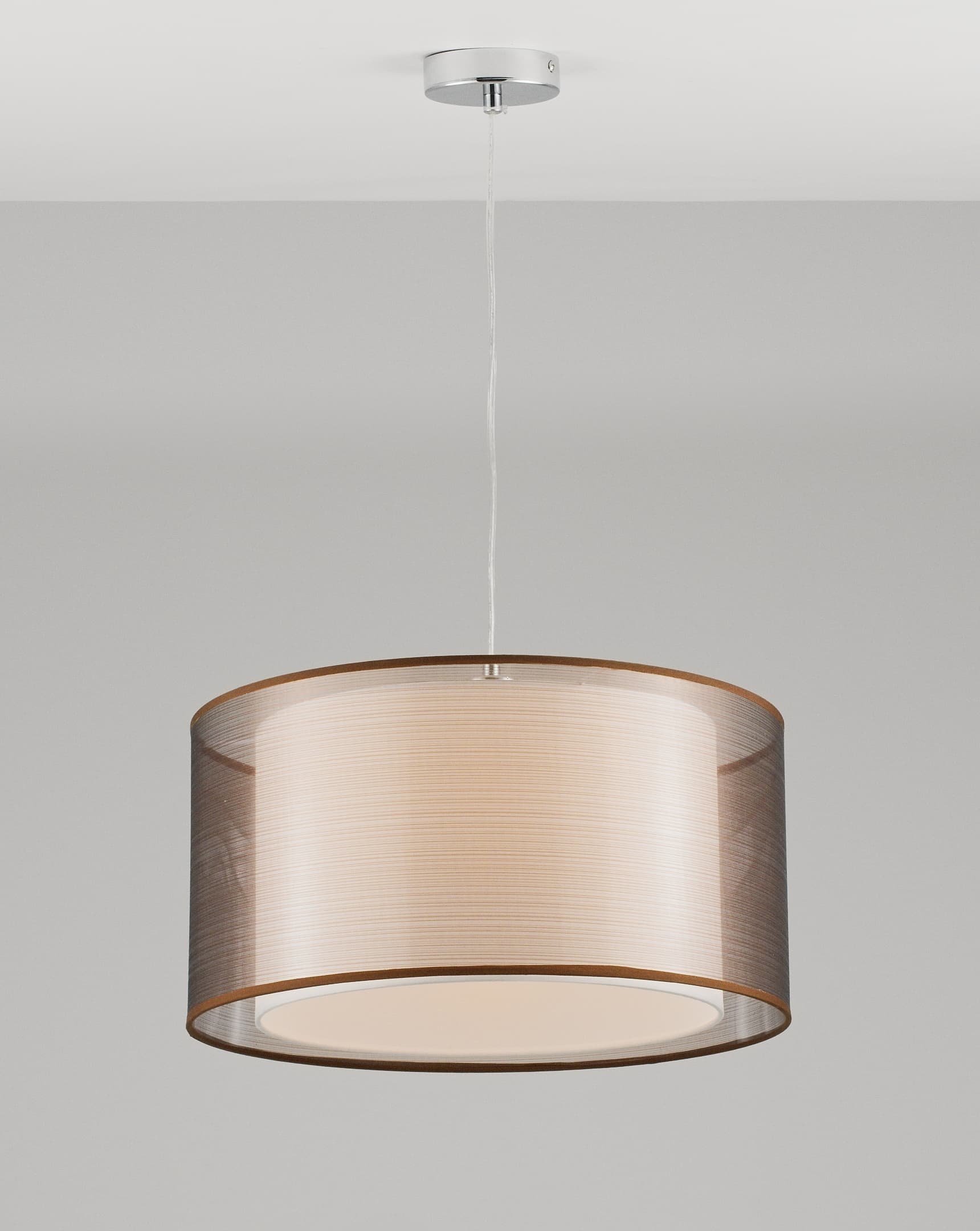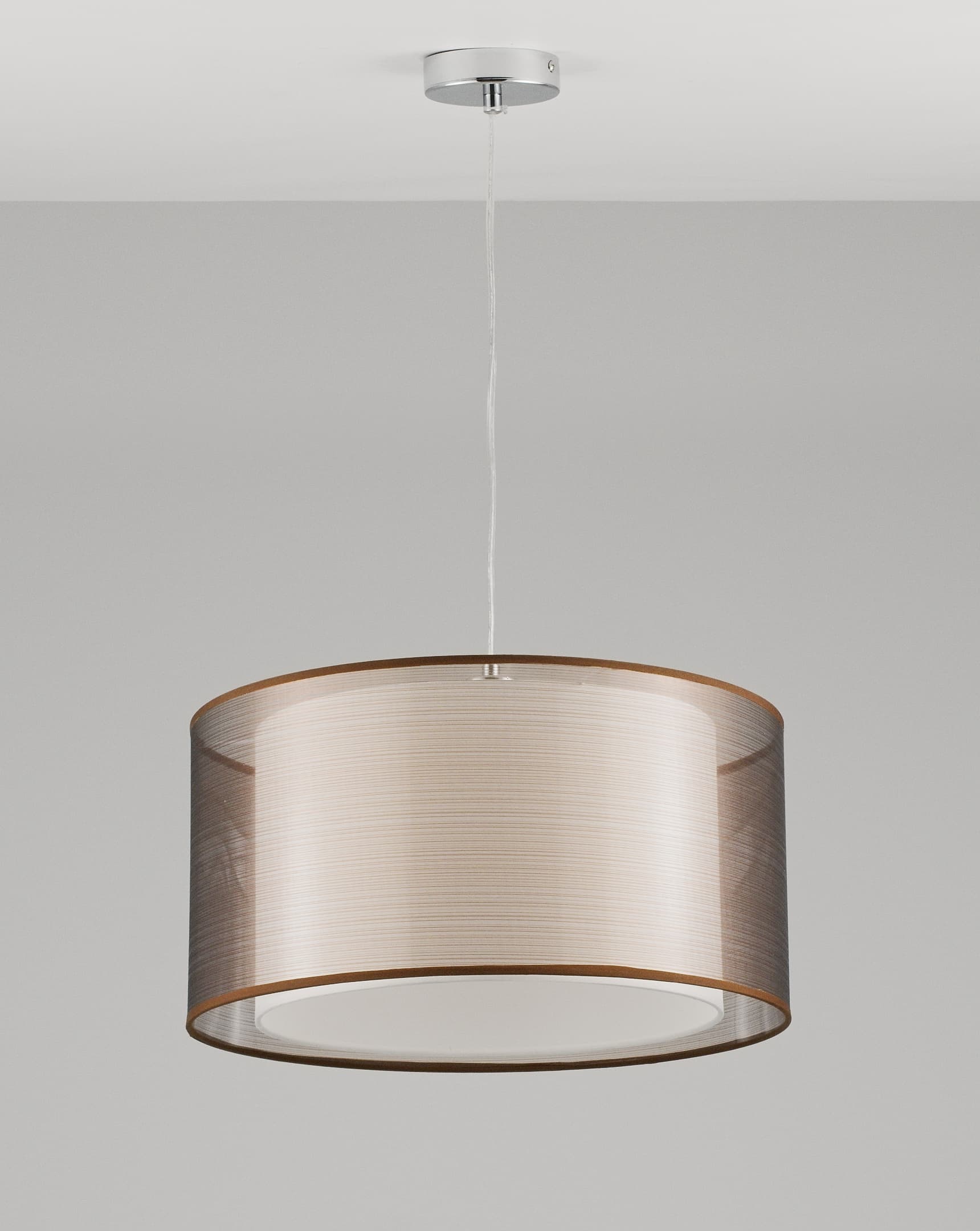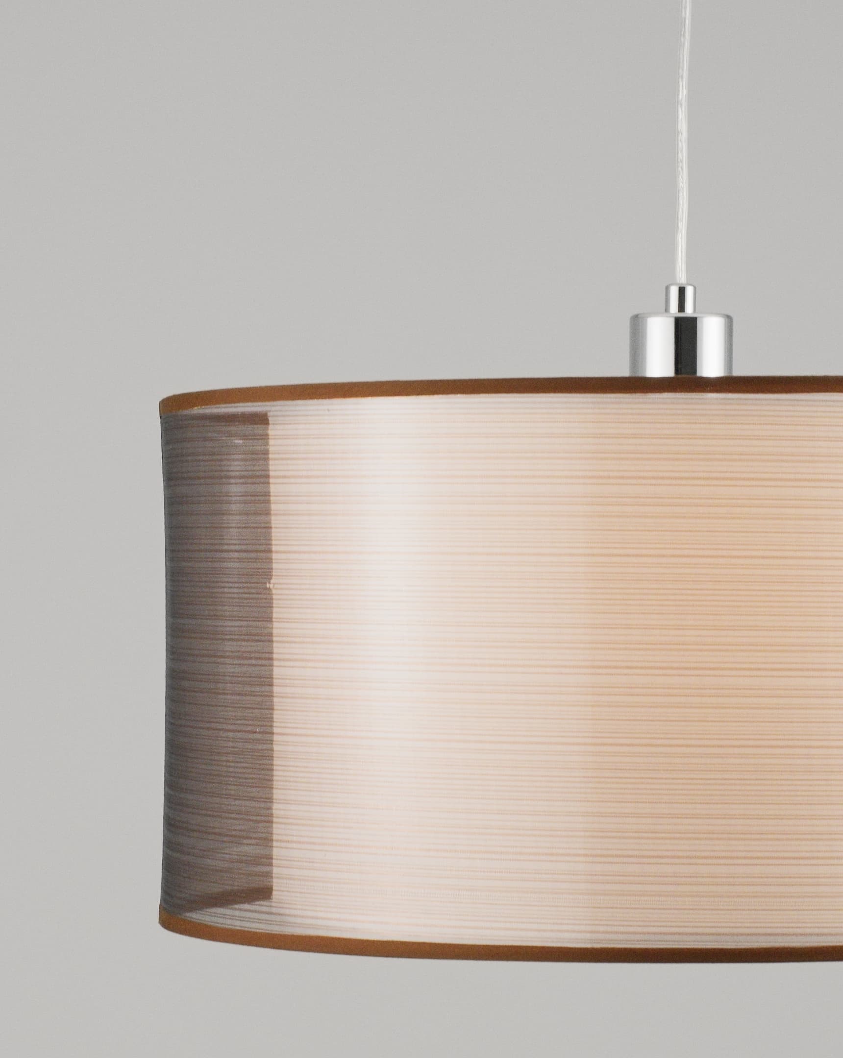 Допускается отличие страны-изготовителя, указанной в характеристиках. Линии производства могут находиться в нескольких государствах. Это не влияет на качество изготовления товара: все заводы данного бренда работают по общим стандартам, а готовые изделия проходят соответствующий контроль.Италия Коллекция Room ЦветЦвет арматуры Хром Цвет Хром Материал арматуры Металл Цвет декора хром Цвет плафона коричневый Материал плафона Текстиль РазмерыВысота (мм) 1000 Ширина (мм) 450 Глубина (мм) 450 ЭлектрикаКоличество ламп (шт) 1 Цоколь E27 Тип лампы Светодиодная, Накаливания Лампочки в комплекте нет Мощность лампы (Вт) 60 Общая мощность (Вт) 60 Напряжение (В) 220-240 Площадь освещения 4 Дополнительная информацияСпособ крепления на планку Степень защиты (IP) 20 Вес (Кг) 1.2 Тип подвеса На тросах Количество подвесов Одиночный подвес -