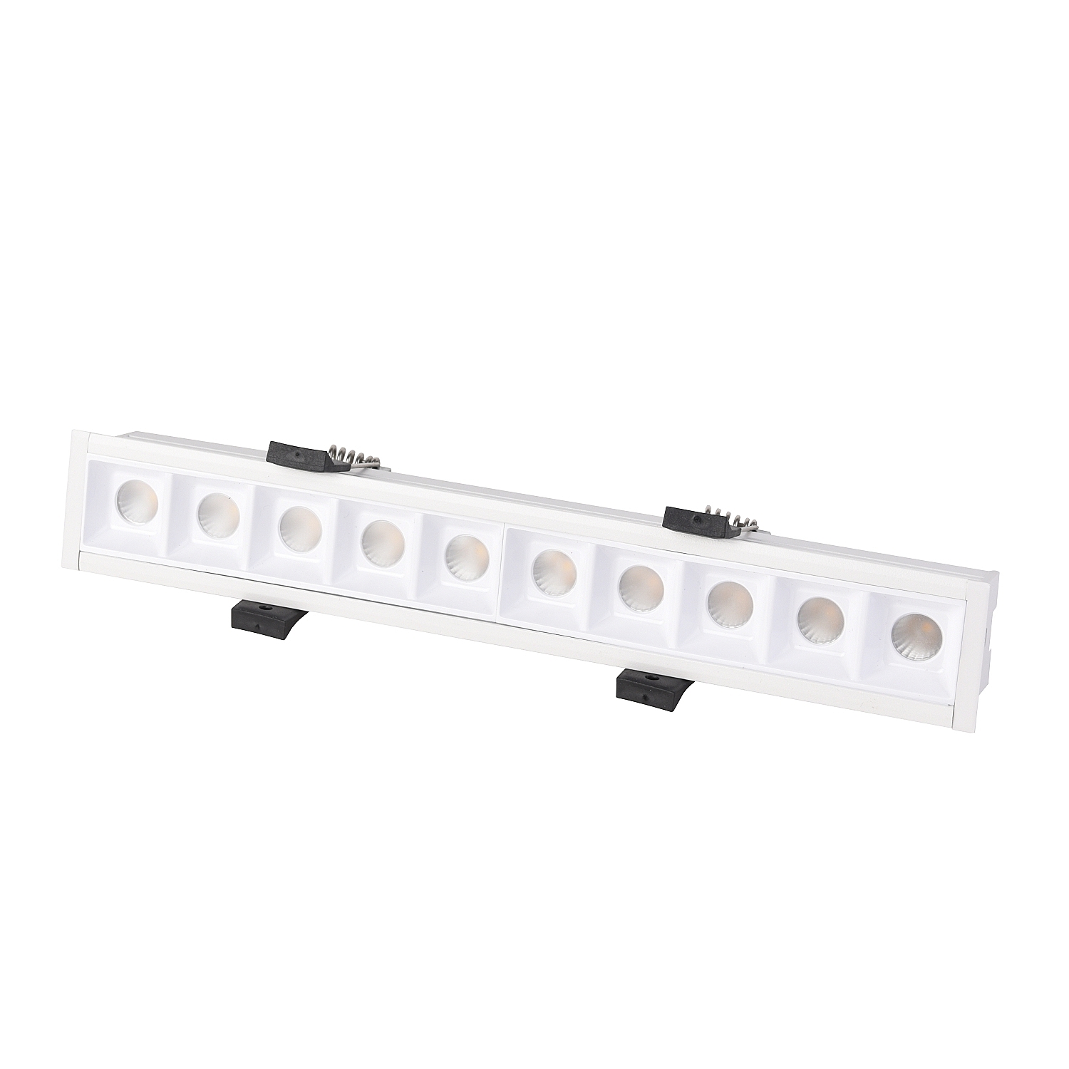 врезной прожекторный светильник, каркас белого цвета, возможность составления комбинации из нескольких светильников