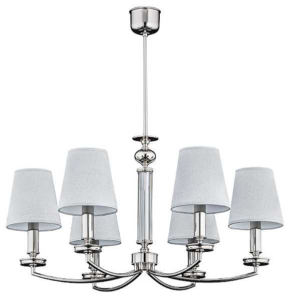 Шестирожковая люстра ROS-ZW-6 (BN/A) в хромированной отделке - выразительная и элегантная модель для столовой, гостиной или спальни. Абажуры равномерно распределяют свет, а хром придаёт интерьеру ощущение стабильности и уюта.