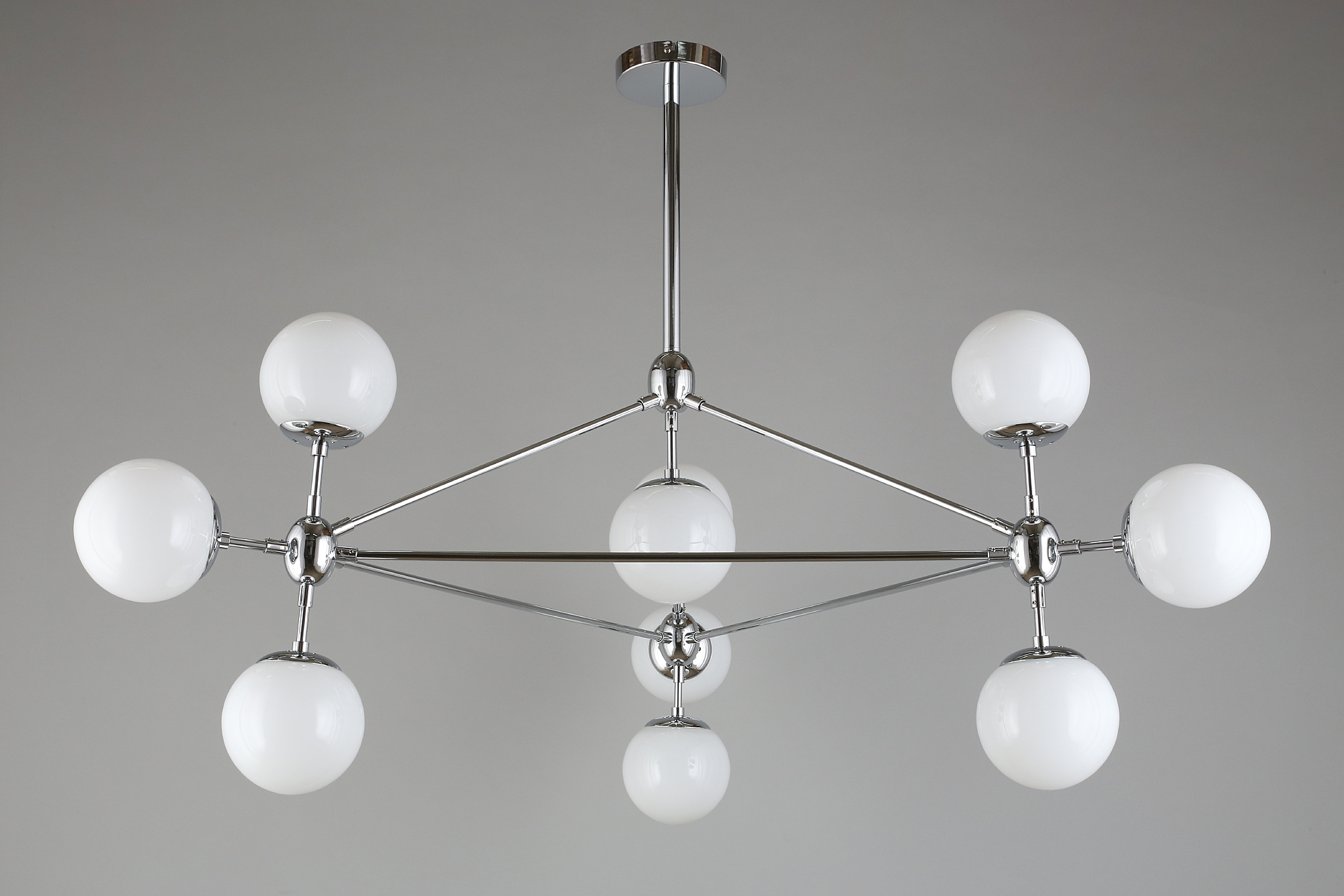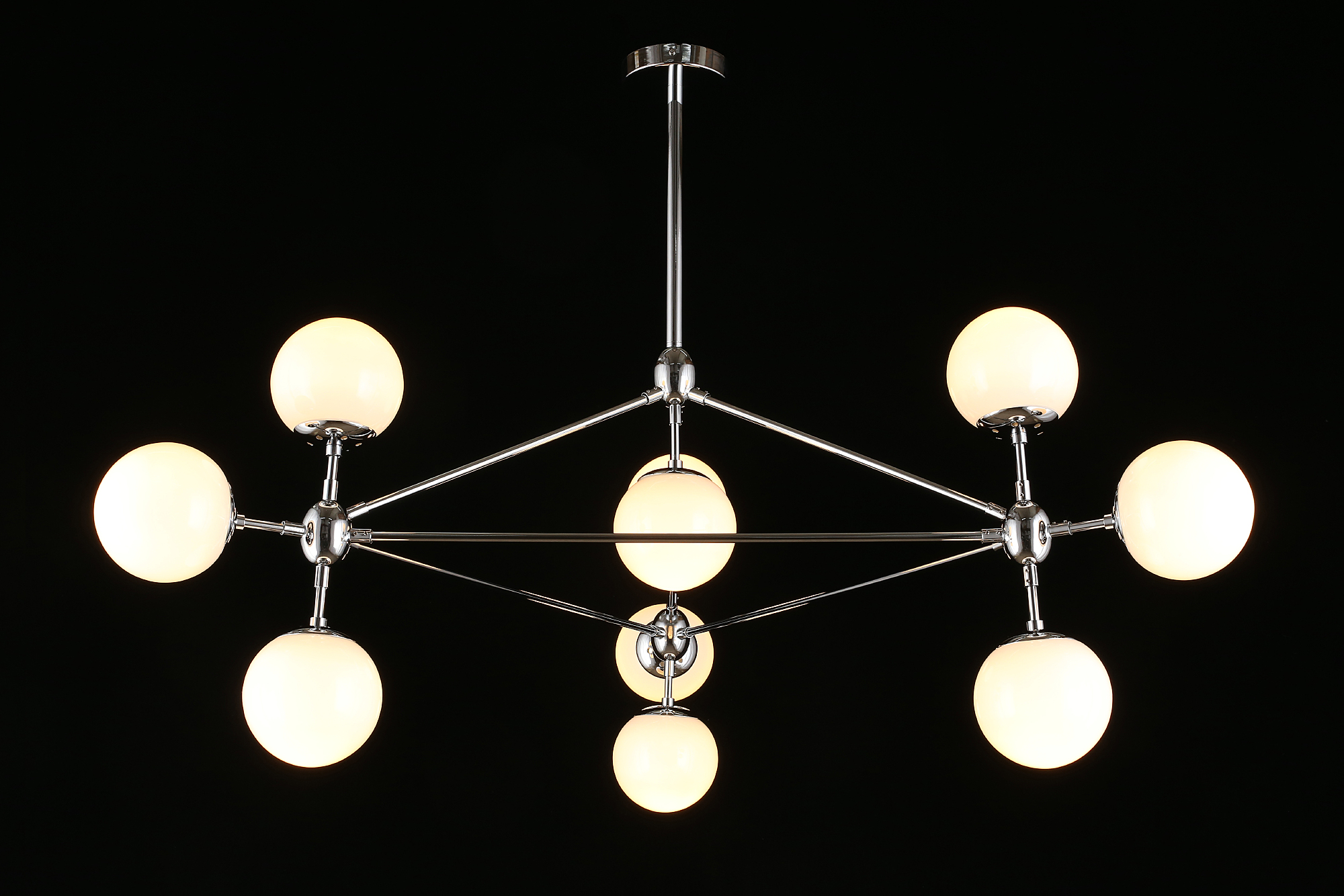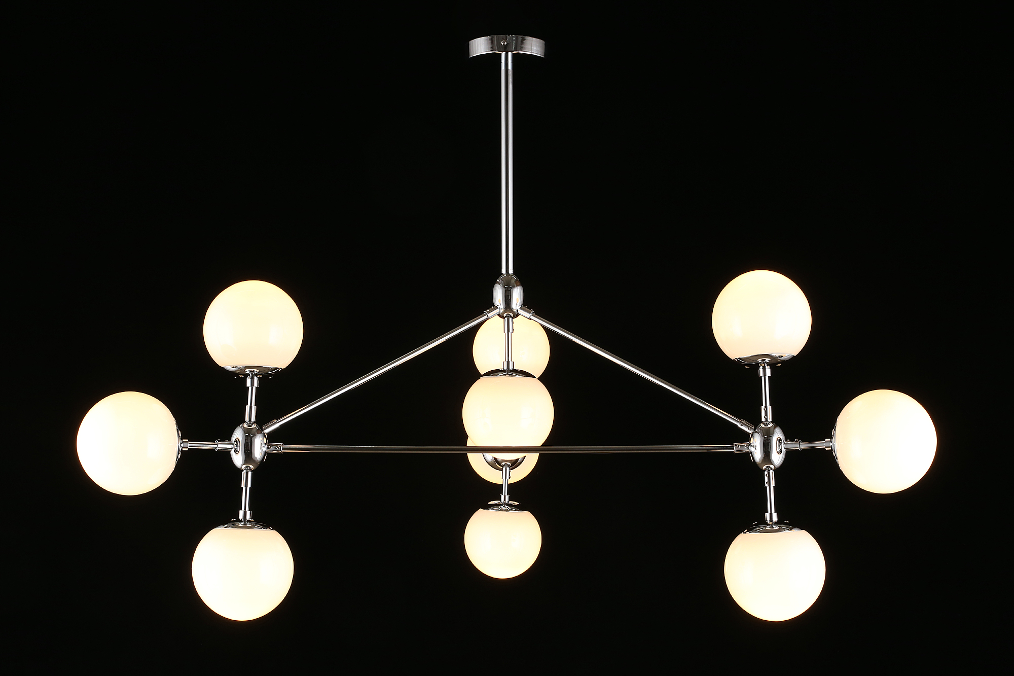 Допускается отличие страны-изготовителя, указанной в характеристиках. Линии производства могут находиться в нескольких государствах. Это не влияет на качество изготовления товара: все заводы данного бренда работают по общим стандартам, а готовые изделия проходят соответствующий контроль.Польша Коллекция Rozali ЦветЦвет арматуры Хром Цвет Хром Материал арматуры Металл Цвет плафона Белый Материал плафона Стекло РазмерыВысота (мм) 910 Длина (мм) 1000 Высота минимальная (мм) 650 Ширина (мм) 1000 ЭлектрикаКоличество ламп (шт) 10 Цоколь E27 Лампочки в комплекте Нет в комплекте Мощность лампы (Вт) 40 Общая мощность (Вт) 400 Световой поток 4200 Дополнительная информацияСпособ крепления Планка Вес (Кг) 3.5 -