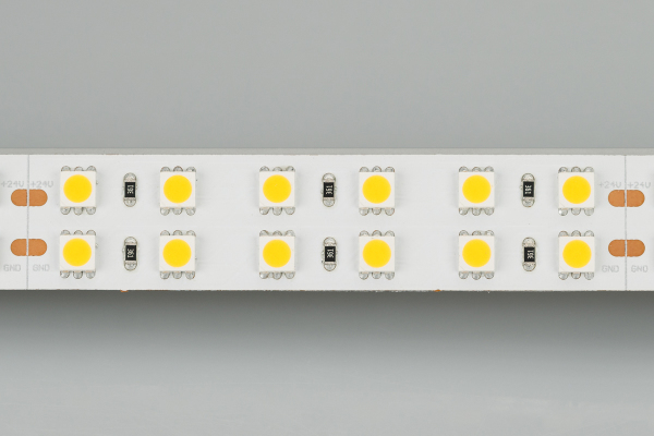 Гибкая лента LUX, светодиоды smd 5060, 144шт/м (720шт на 5м), скотч 3М. Цвет ТЁПЛЫЙ 2600-2800K. Питание 24V, мощность 34.4 Вт/м (172 Вт на 5м), угол 120°, цветопередача CRI>85. Размеры 5000х19x2.2мм. Мин.отрезок 83.33мм, 12шт светодиодов. Пакет 5м. Цена за 1м. Обязательная установка на профиль.