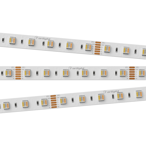 Светодиодная лента RT-B60, открытая. Светодиоды 5060 5-in-1, 60 шт/м (300 шт на 5 м), белая плата, ширина 12 мм, скотч 3M. Цвет RGBW-MIX, цветопередача CRI>85, угол 120?. Питание 24V, мощность 20 Вт/м (100 Вт на 5 м). Размеры 5000x12x2.1 мм. Мин. отрезок 100 мм, 6 светодиодов. Цена за 1 м.
