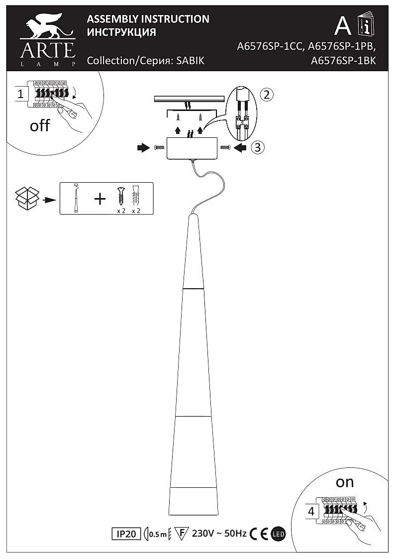 Производитель Arte Lamp Артикул A6576SP-1BK Страна