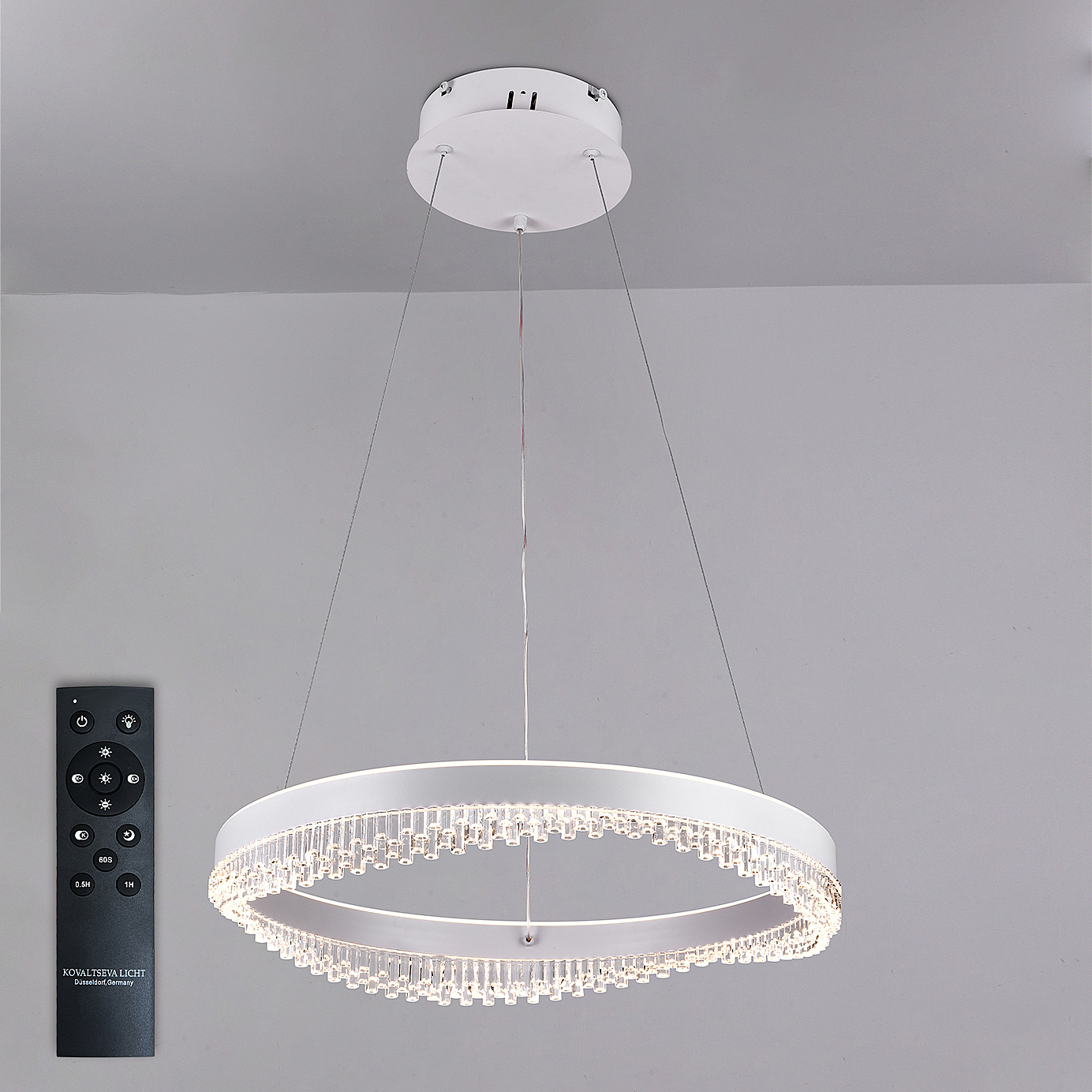 Светодиодный светильник люстра с пультом ДУ, моб приложением для управления со смартфона, планшета. Светильник имеет круглую, кольцеобразную форму с эстетическим дизайном нимб. По периметру располагается контурное свечение, благодаря которому светильник подойдёт в любой интерьер. Высота люстры регулируется, можно настроить нужный наклон нимба. Люстра имеет тёплый, естественный и холодный свет с регулировкой температуры свечения. Обладает плавной настройкой яркости в диапазоне от 10% до 100%. Имеется режим ночника и таймер отключения. От стандартного выключателя люстра имеет 4 режима свечения. Общая мощность 120W со световым потоком 6600 lm позволяет осветить до 20 кв.м. Он прост в сборке, установке и экономичен в обслуживании. Люстра подойдёт для всех видов потолков. Цветовая температура настраивается от 3000 до 6500 K. Степень защиты 20 IP.