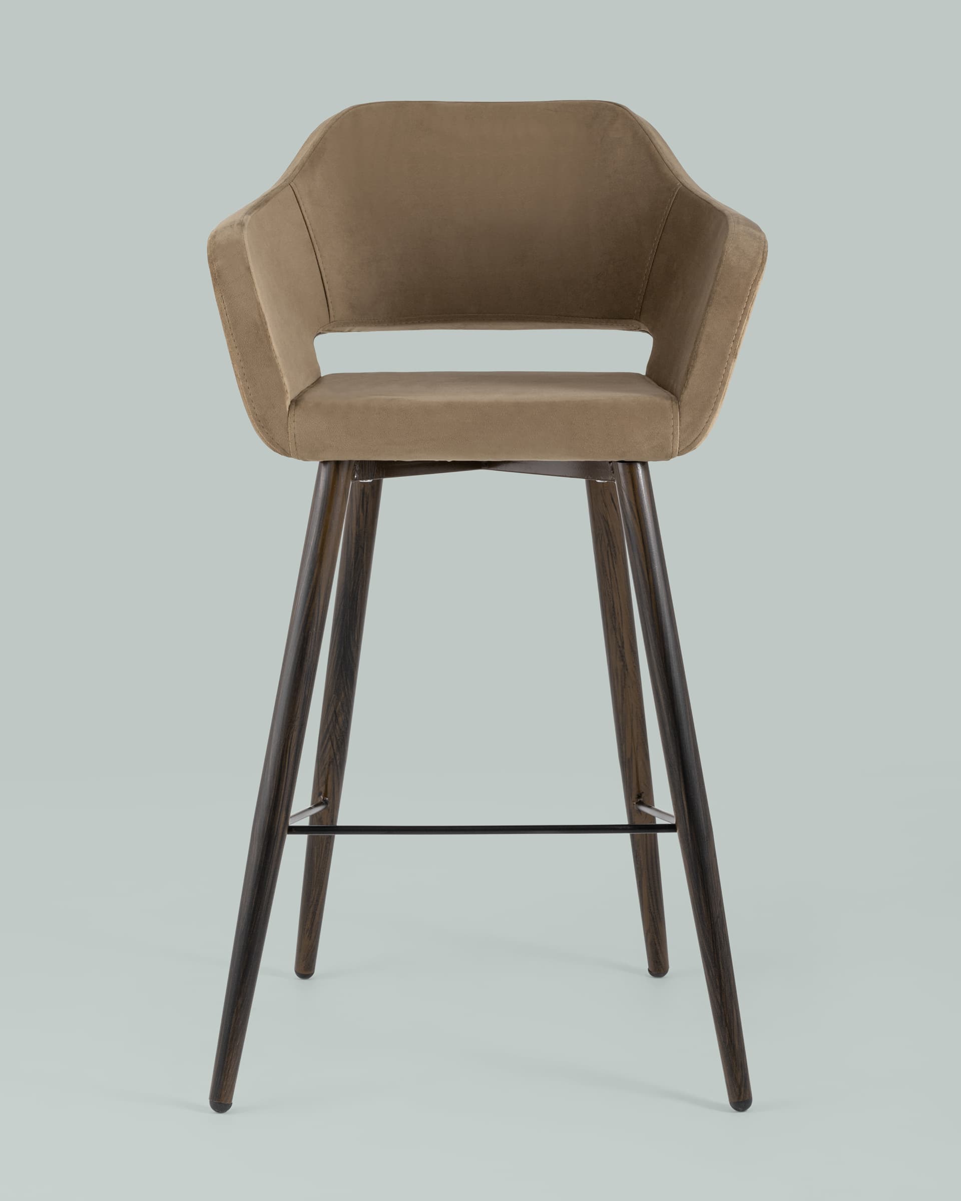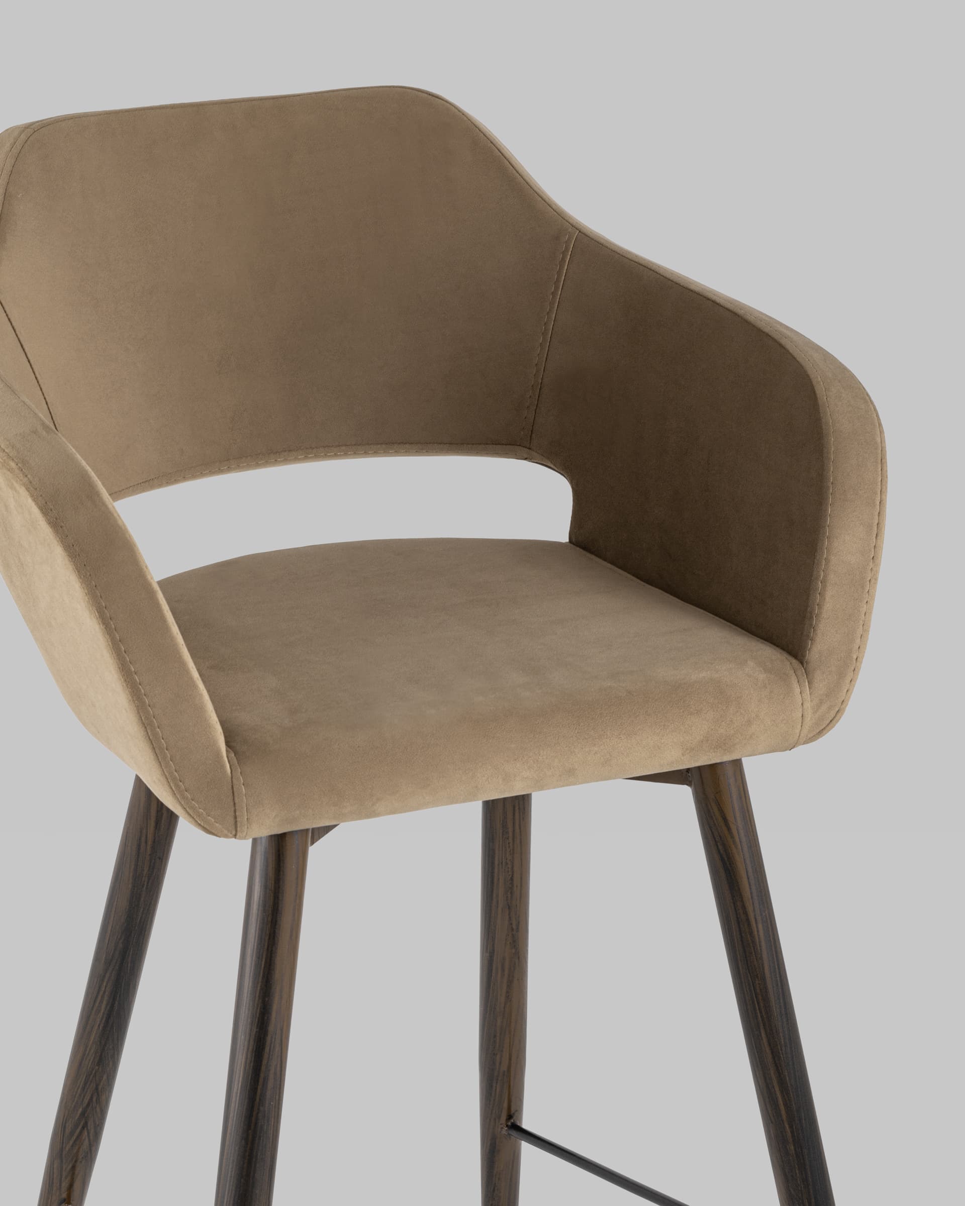 Стул барный Саймон обивка велюр капучино ножки металл темное дерево