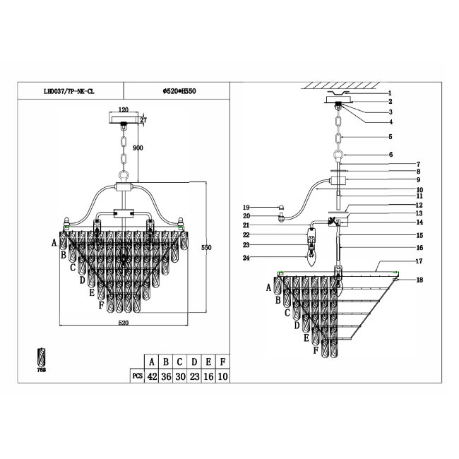 Производитель Lumien Hall Артикул LH0037/7P-NK-CL Страна