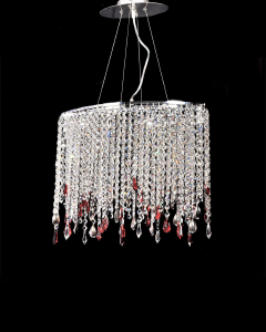 Допускается отличие страны-изготовителя, указанной в характеристиках. Линии производства могут находиться в нескольких государствах. Это не влияет на качество изготовления товара: все заводы данного бренда работают по общим стандартам, а готовые изделия проходят соответствующий контроль.Польша Коллекция Santosa ЦветЦвет арматуры Прозрачный, серебряный Цвет Хром Материал арматуры Хрусталь, Металл Цвет плафона Красный, серебряный Материал плафона Металл, Хрусталь РазмерыВысота (мм) 470 Диаметр (мм) 450 Высота минимальная (мм) 500 Ширина (мм) 450 ЭлектрикаКоличество ламп (шт) 4 Цоколь G9 Тип лампы Светодиодная Лампочки в комплекте нет Мощность лампы (Вт) 40 Напряжение (В) 220 Дополнительная информацияСтепень защиты (IP) IP20 Вес (Кг) 9 Тип подвеса На тросах -