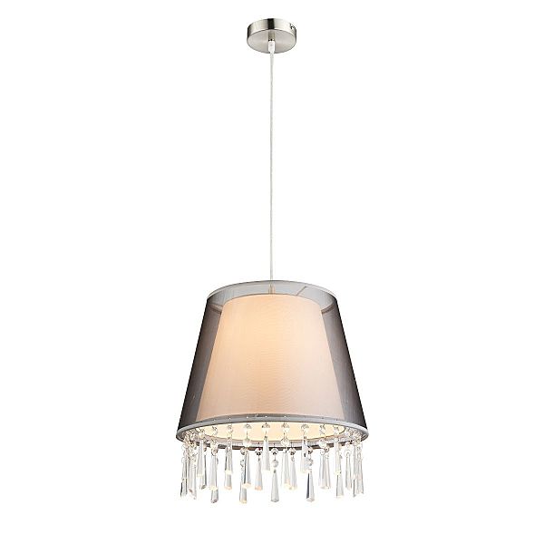 Допускается отличие страны-изготовителя, указанной в характеристиках. Линии производства могут находиться в нескольких государствах. Это не влияет на качество изготовления товара: все заводы данного бренда работают по общим стандартам, а готовые изделия проходят соответствующий контроль.Австрия Коллекция Satine ЦветЦвет арматуры Никель Цвет Никель Материал арматуры Металл Цвет плафона Черный Материал плафона Хрусталь, Текстиль, Пластик РазмерыВысота (мм) 1400 Диаметр (мм) 340 Ширина (мм) 340 ЭлектрикаКоличество ламп (шт) 1 Цоколь E27 Лампочки в комплекте Нет в комплекте Мощность лампы (Вт) 60 Напряжение (В) 220 Дополнительная информацияСтепень защиты (IP) IP20 Вес (Кг) 1,14 Тип подвеса На тросах Количество подвесов Одиночный подвес -