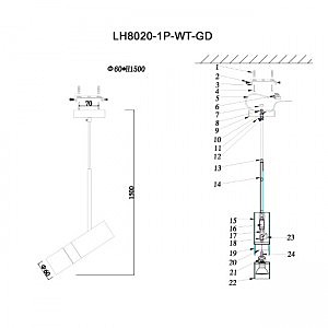Светильник подвесной Sauris LH8020/1P-WT-GD