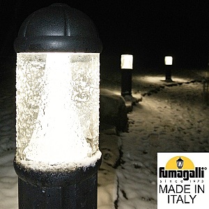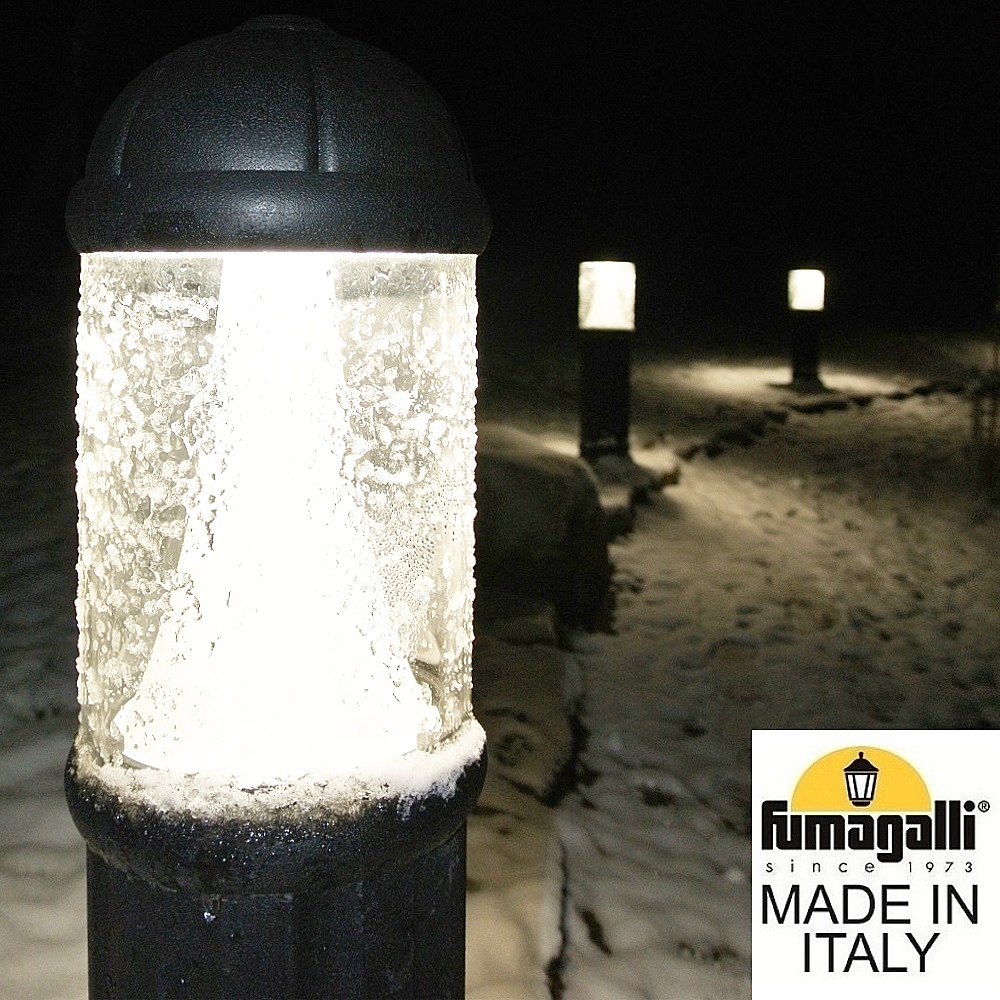 Садовый светильник-столбик FUMAGALLI серии SAURO, модель SAURO 1100 - изготовлены в Италии. Используются для освещения парковых дорожек, газонов, парковок, набережных, как элементы ландшафтного и светового дизайна. Корпус изготовлен из современного вандалостойкого, негорючего полимера RESIN. Прочного, окрашенного в массе, не ржавеющего, не выгорающего на солнце, не проводящего электричество. Все светильники пыле-влаго защищены по стандарту IP55. Рассеиватель выполнен из толстого антивандального, не мутнеющего и не горючего PMMA (ПолиМетилМетаАкрилат). Срок службы светильника - не менее 20 лет, в течении которого парковый светильник не нужно красить и как либо обслуживать. Температура эксплуатации от -60 до +90. При заказе требуется выбрать цвет корпуса, цвет плафона и тип патрона. Серия SAURO включает в себя светильники высотой 0,50 метра, 0,80 метра, 1,10 метра, а так же уличный светильник MIRELLA с установкой на стену. Дополнительно можно использовать столбики- ограждения NARDO высотой 60 и 90 сантиметров. Между столбиков можно натягивать цепочку. Также светильник-столбик с цоколем Е27, может комплектоваться хромированным или белым рассеивателем на лампу. Закладные крепежные элементы паркового столба SAURO - в комплекте.