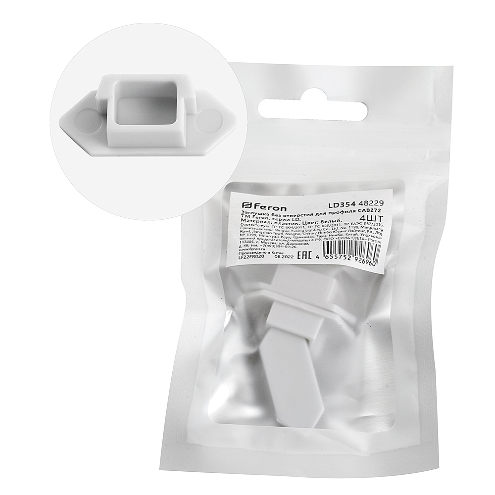 Заглушка Для Профиля Feron Ld354 "Без Отверстия", Цвет Белый, В Комплекте 4 Шт, 26*7*10Мм