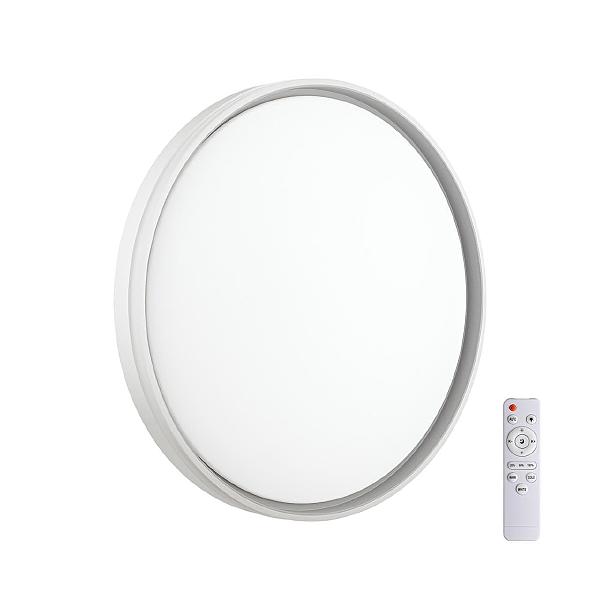 Светильник 7631/DL линии SAVI состоит из металлического основания (базы) и пластикового рассеивателя. Материал рассеивателя - качественный акрил белого цвета с матовой поверхностью, без текстуры. Пластик обеспечивает светильнику равномерное рассеивание и хорошее светопропускание. Форма плафона: круглая, декорирована ободом из пластика светло-серого цвета. Степень защиты IP43 позволяет использовать светильник в определенных зонах влажных помещений. В комплект входит заменяемый LED модуль с линзами, мощностью 48Вт, которая соответствует лампе накаливания 350Вт. А также пульт ДУ, с помощью которого осуществляется плавное изменение цветовой температуры 3000-6000К, изменение яркости, переход в режим переключения теплого/белого/холодного/ночного света. Светильник имеет функцию "память".