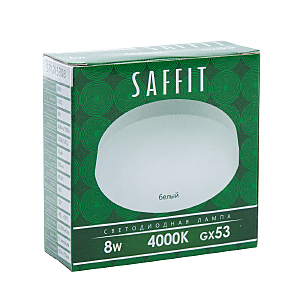 Лампа светодиодная SAFFIT SBGX5308, GX53 (таблетка), 8W 230V GX53 4000К (белый), рассеиватель матовый белый, 680Lm, угол рассеивания 120градусов, 26*74мм
