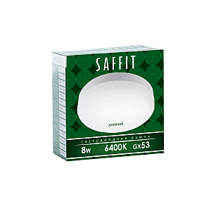 Лампа светодиодная SAFFIT SBGX5308, GX53 (таблетка), 8W 230V GX53 6400К (дневной), рассеиватель матовый белый, 680Lm, угол рассеивания 120градусов, 26*74мм