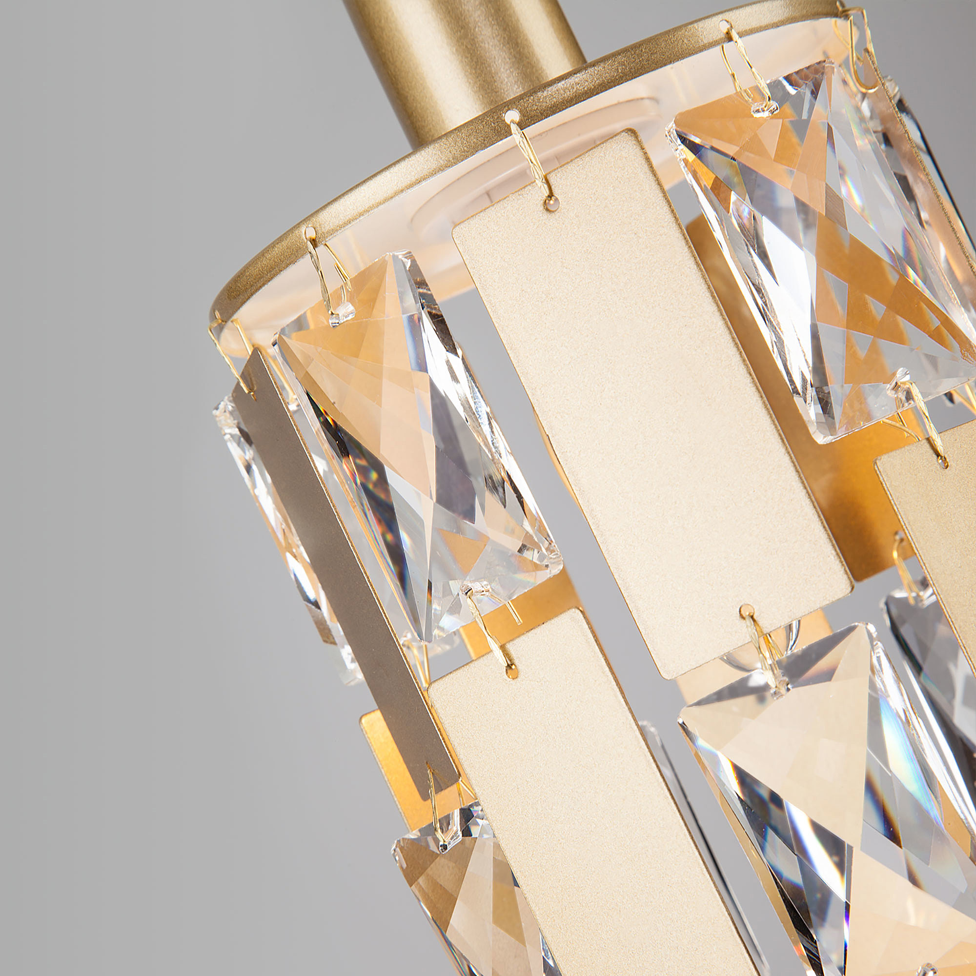 Допускается отличие страны-изготовителя, указанной в характеристиках. Линии производства могут находиться в нескольких государствах. Это не влияет на качество изготовления товара: все заводы данного бренда работают по общим стандартам, а готовые изделия проходят соответствующий контроль.Китай Коллекция Scoppio ЦветЦвет арматуры перламутровое золото Цвет Золото Материал арматуры Металл Цвет плафона прозрачный, перламутровое золото Материал плафона Металл, Хрусталь РазмерыВысота (мм) 1000 Длина (мм) 115 Ширина (мм) 115 ЭлектрикаКоличество ламп (шт) 1 Цоколь E14 Мощность лампы (Вт) 60 Напряжение (В) 220 Площадь освещения 4 Дополнительная информацияСпособ крепления Планка Степень защиты (IP) IP20 Тип подвеса На тросах Количество подвесов Одиночный подвес -