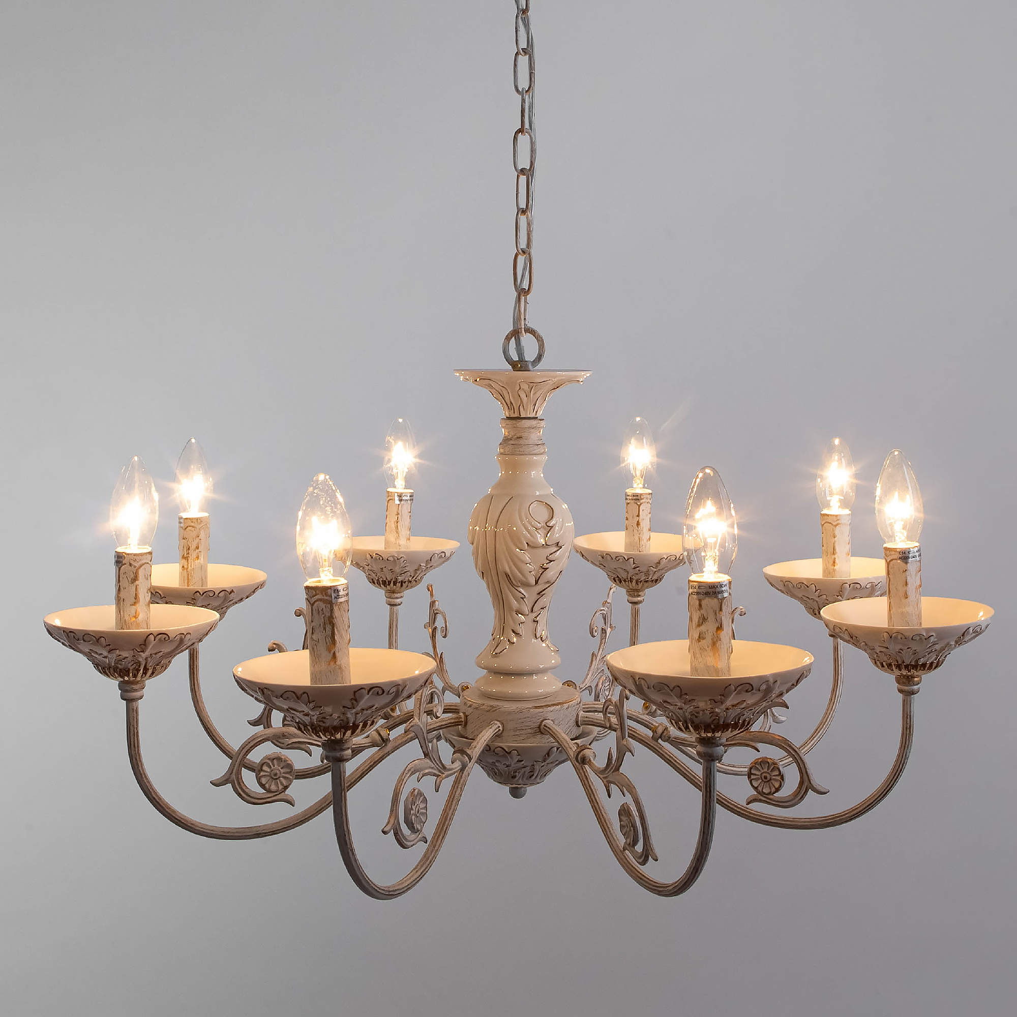 Допускается отличие страны-изготовителя, указанной в характеристиках. Линии производства могут находиться в нескольких государствах. Это не влияет на качество изготовления товара: все заводы данного бренда работают по общим стандартам, а готовые изделия проходят соответствующий контроль.Германия ЦветЦвет арматуры Кремовый Цвет Кремовый Материал арматуры Металл РазмерыВысота (мм) 360 Диаметр (мм) 770 Ширина (мм) 770 ЭлектрикаКоличество ламп (шт) 8 Цоколь E14 Тип лампы Светодиодная, Накаливания Мощность лампы (Вт) 40 Напряжение (В) 220 Площадь освещения 18 Дополнительная информацияСпособ крепления Крюк Степень защиты (IP) IP20 Место установки на потолок Тип подвеса На цепи -