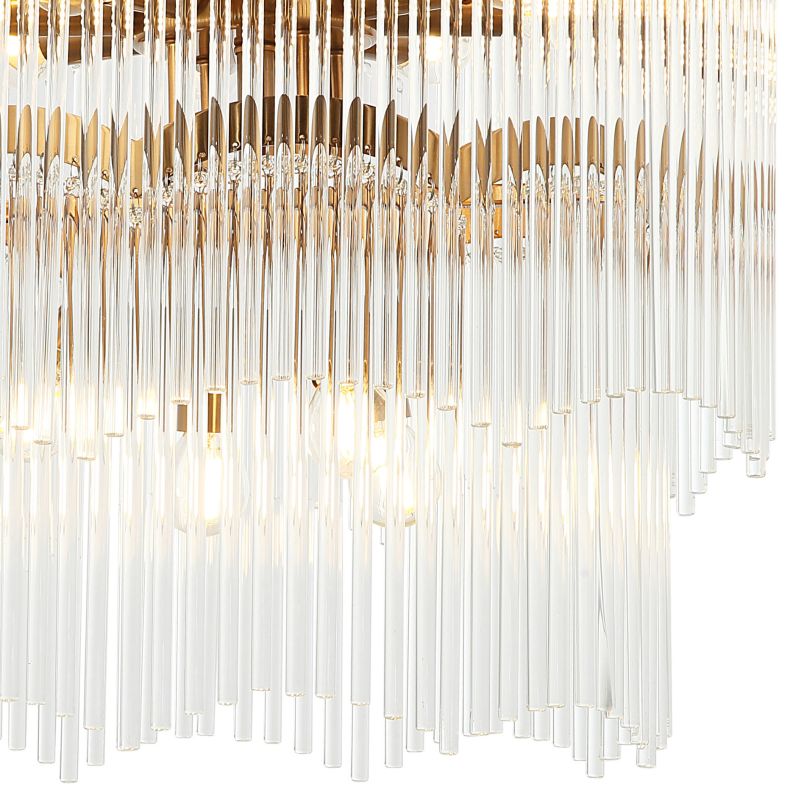 Люстра подвесная из коллекции Seauty выполнена из металла, гальванизированного в цвет бронзы, и декорирована прозрачными стеклянными трубочками. Премиальное качество и неповторимыи? дизаи?н светильников идеально подои?дут в современные и дизайнерские интерьеры.