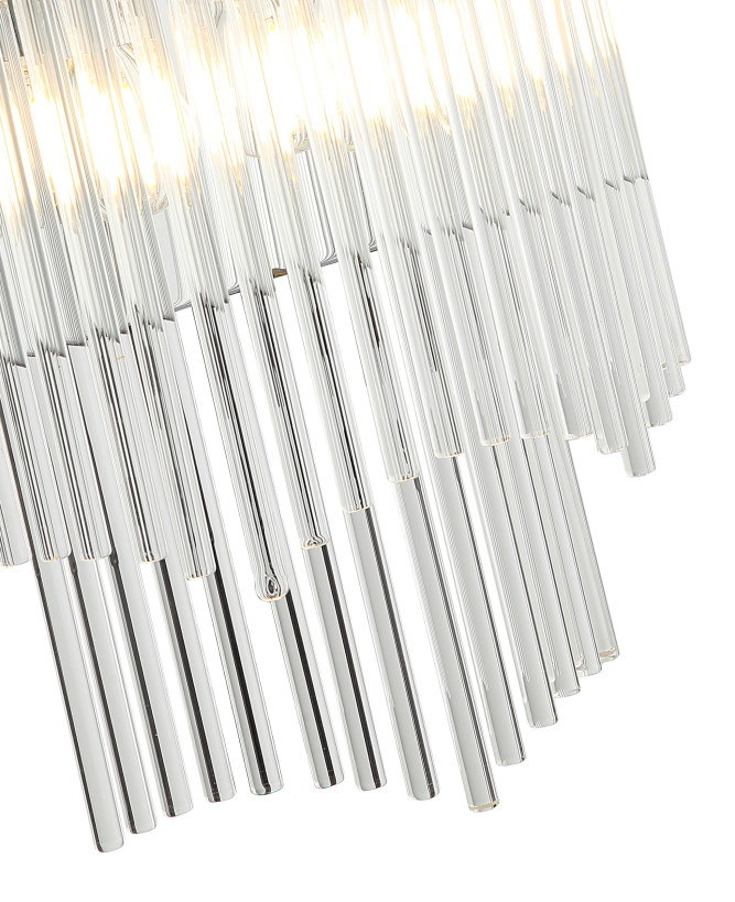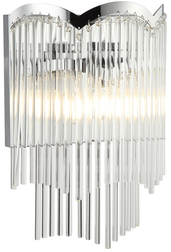 Светильник настенный из коллекции Seauty выполнен из металла, гальванизированного в цвет хрома, и декорирован прозрачными стеклянными трубочками. Премиальное качество и неповторимыи? дизаи?н светильников идеально подои?дут в современные и дизайнерские интерьеры.