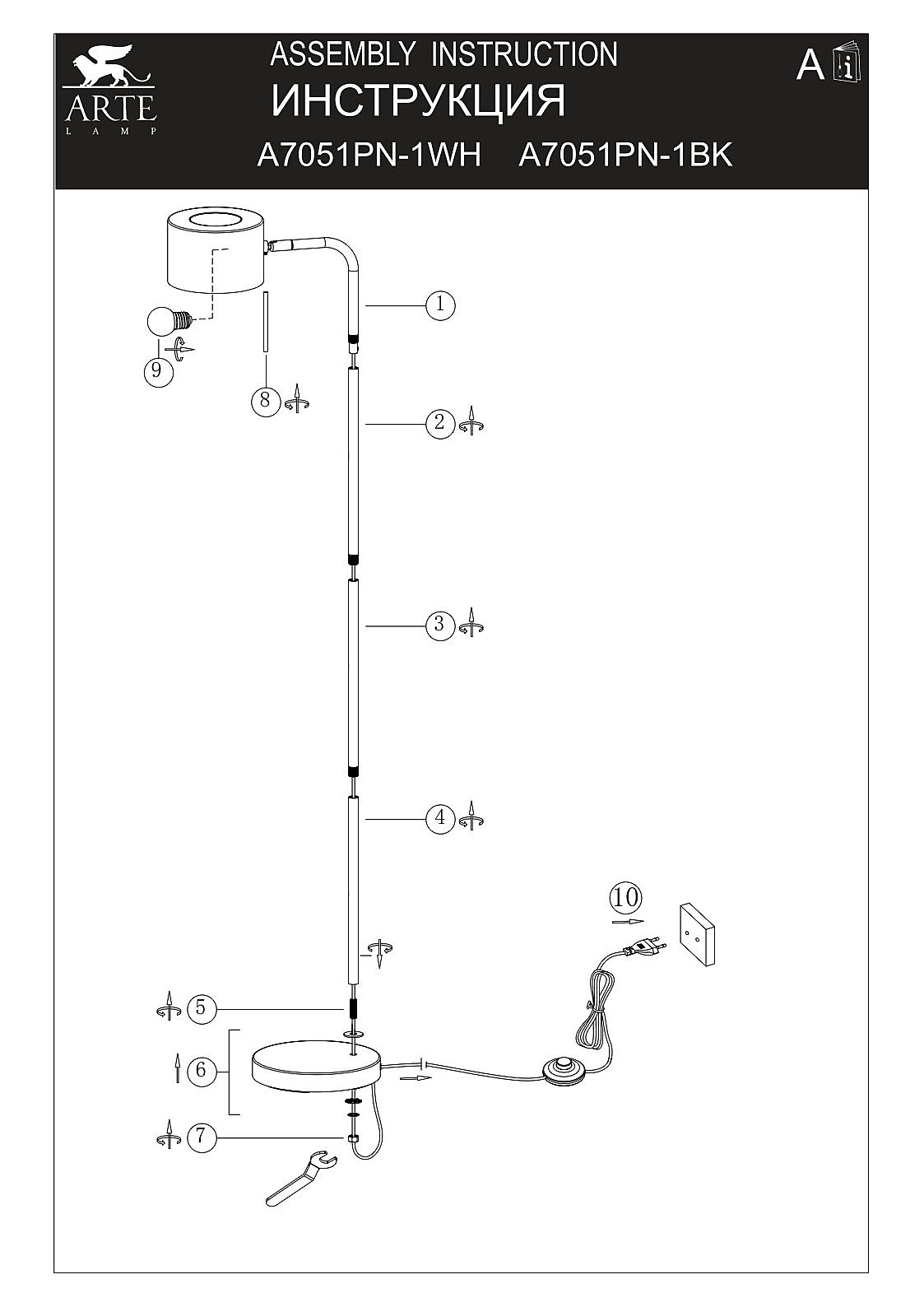 Производитель Arte Lamp Артикул A7051PN-1BK Страна