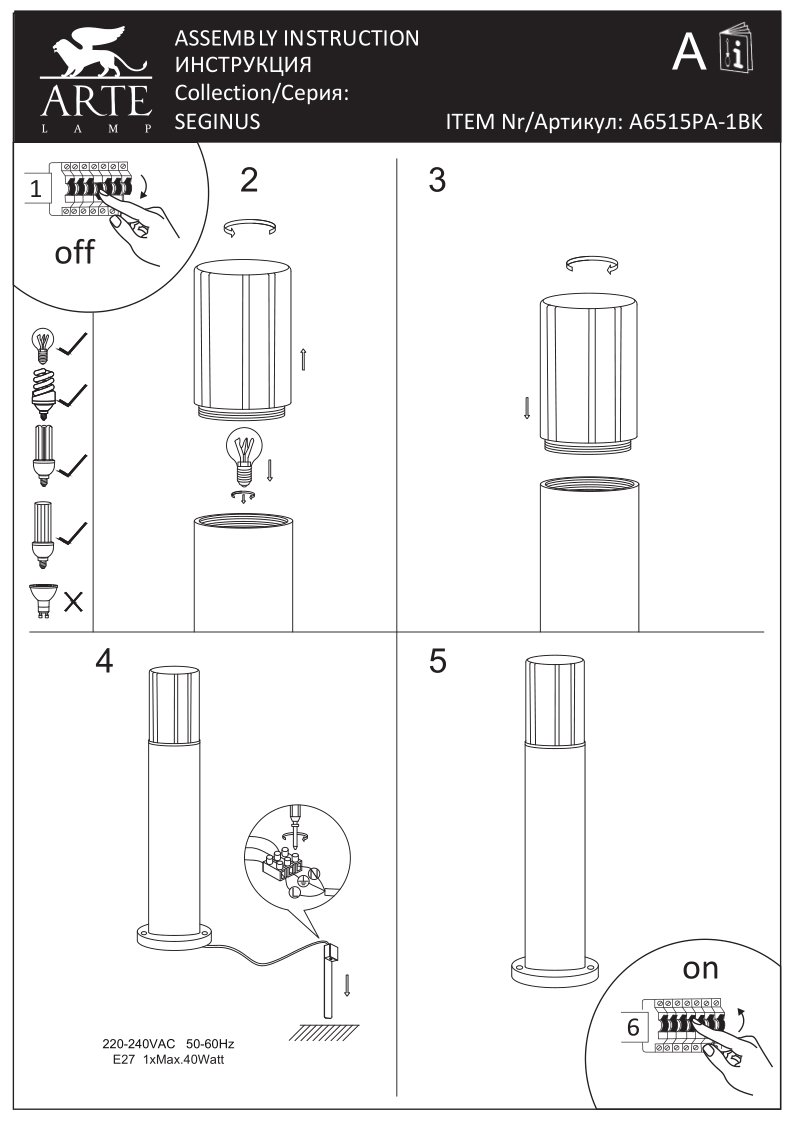 Производитель Arte Lamp Артикул A6515PA-1BK Страна