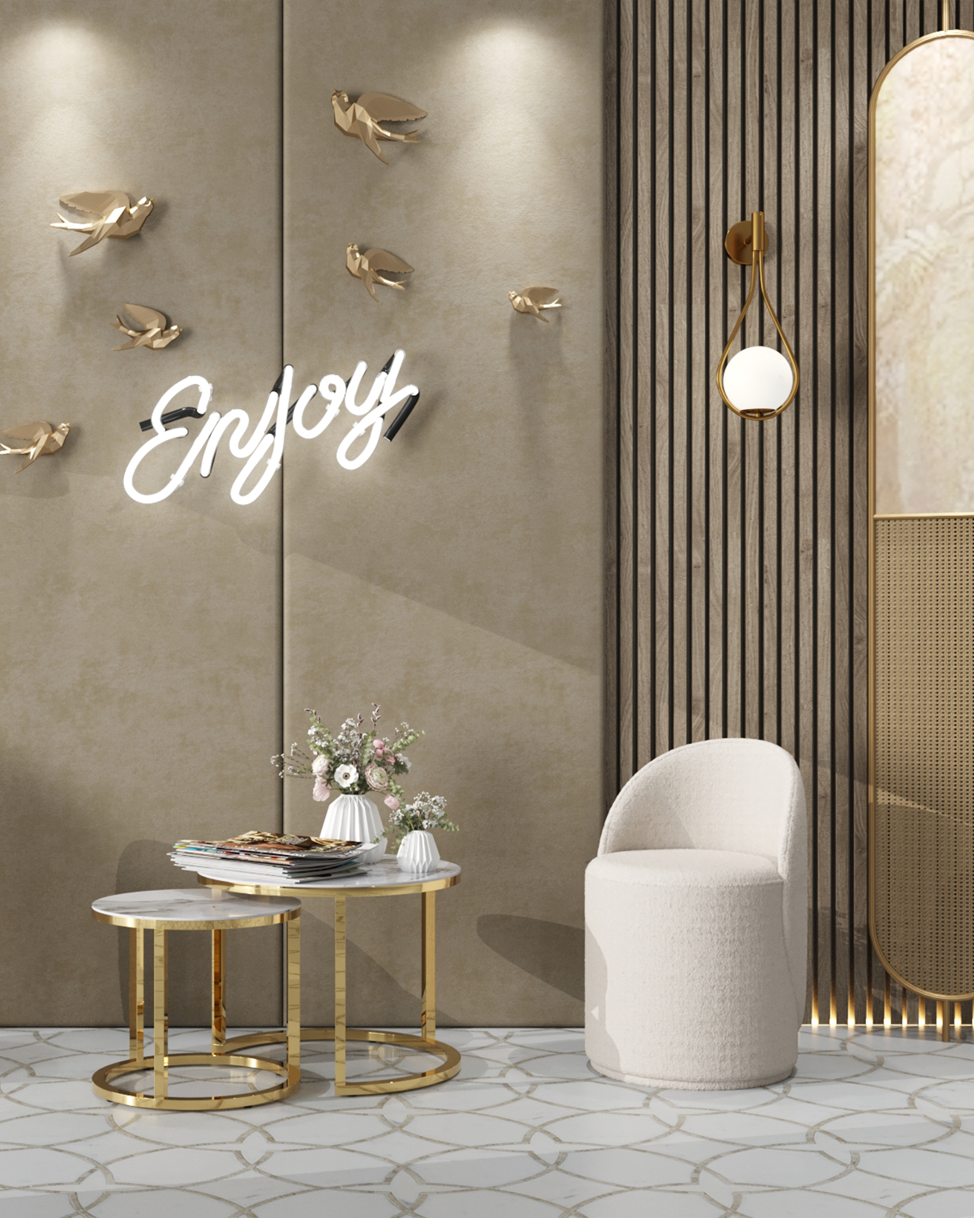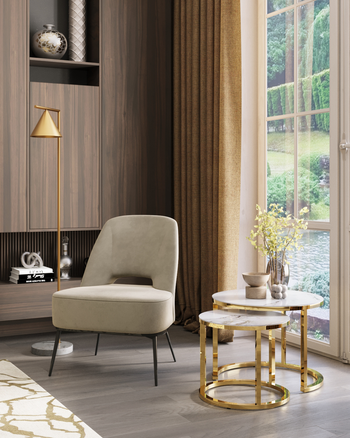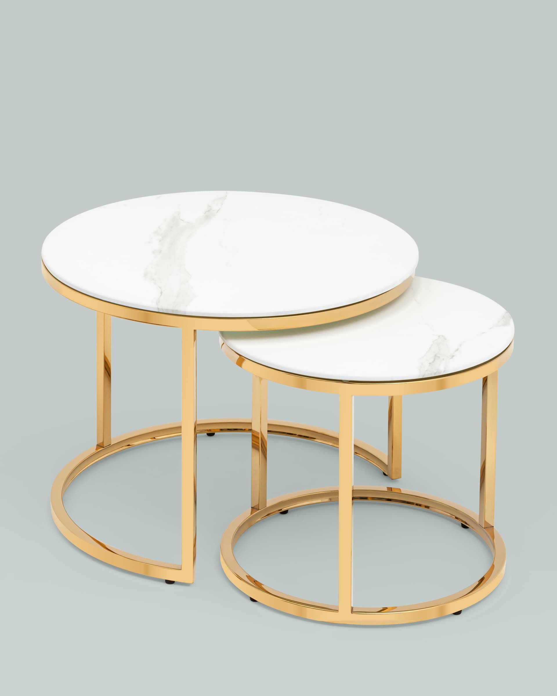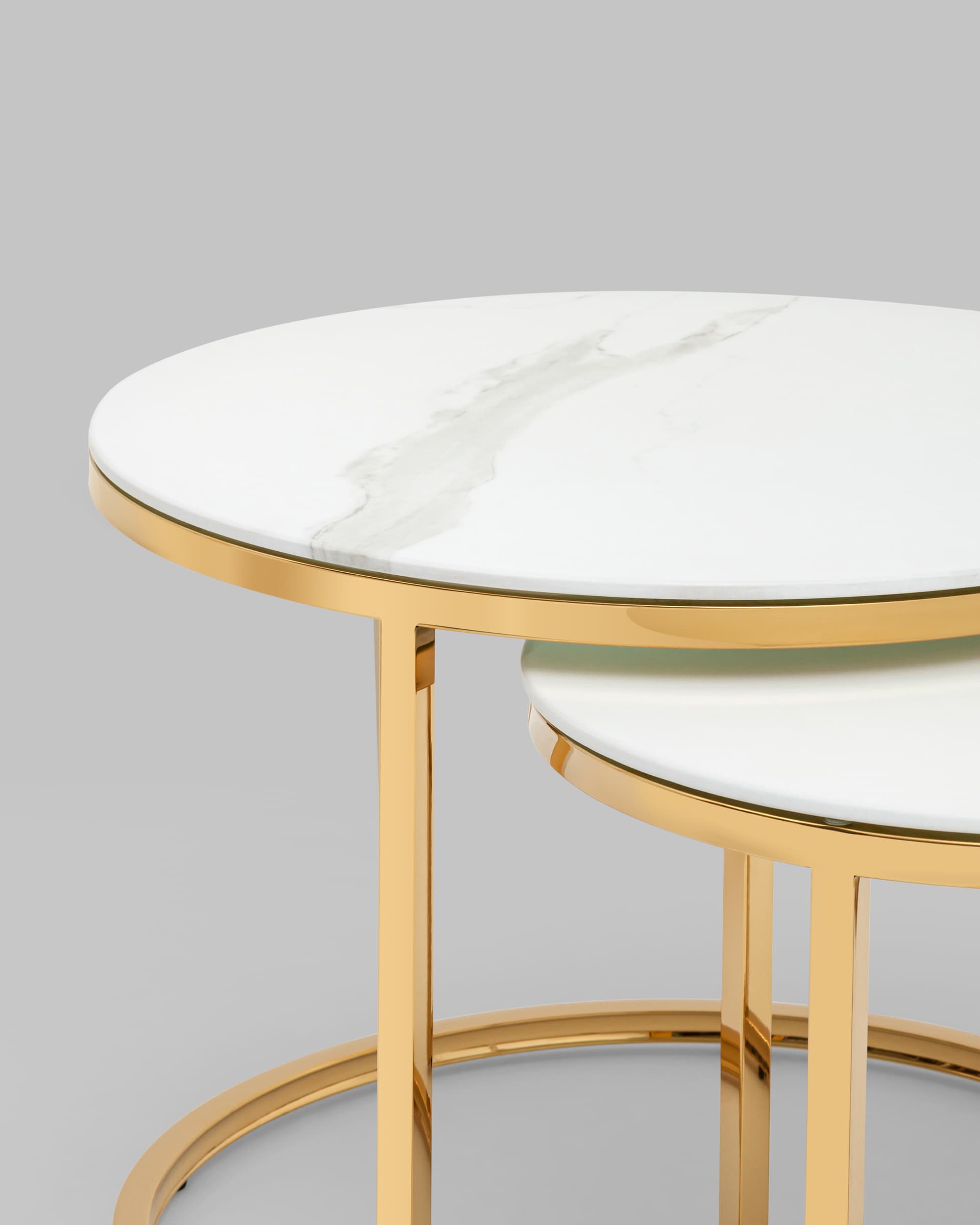 Набор журнальных столиков Селена 60 и 45 см стекло белый мрамор каркас нержавеющая сталь золото