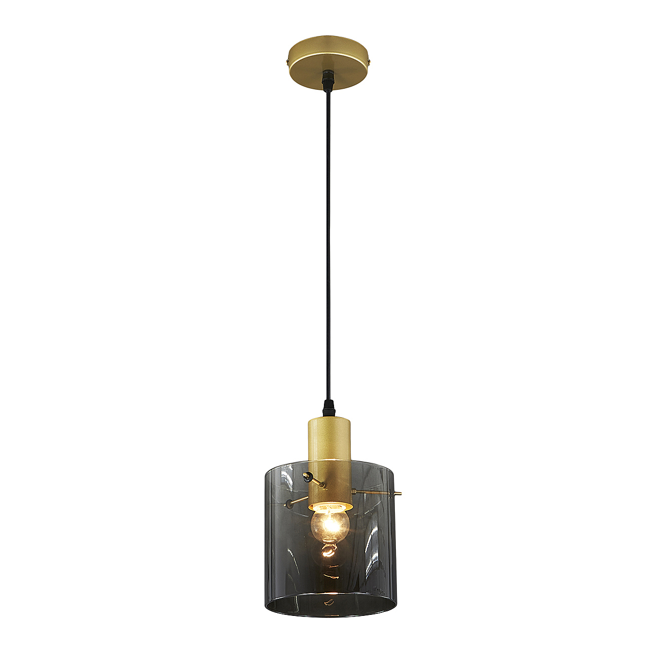 Подвесной светильник 1х40Вт Е27, металл/стекло, золото/чёрный/дымчатый плафон