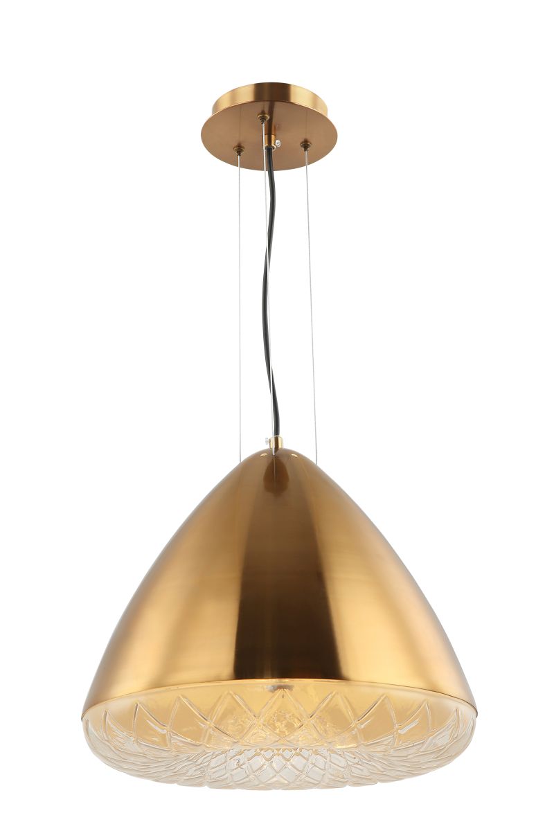 Светильник подвесной из коллекции Senso выполнен из металла, гальванизированного в цвет бронзы, и металлического плафона цвета бронзы. С внутренней стороны плафон окрашен в цвет золота. Источник света закрыт прозрачным текстурированным стеклом. Современная форма и высокое качество светильников идеально подойдут как в классические, так и современные интерьеры.