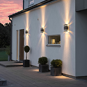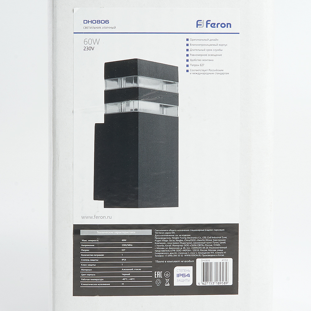 Светильник садово-парковый, серии "Сеул" (НБУ) FERON DH0806 60W, E27, 230V, IP54, цвет черный, на стену вверх, 110*65*195мм