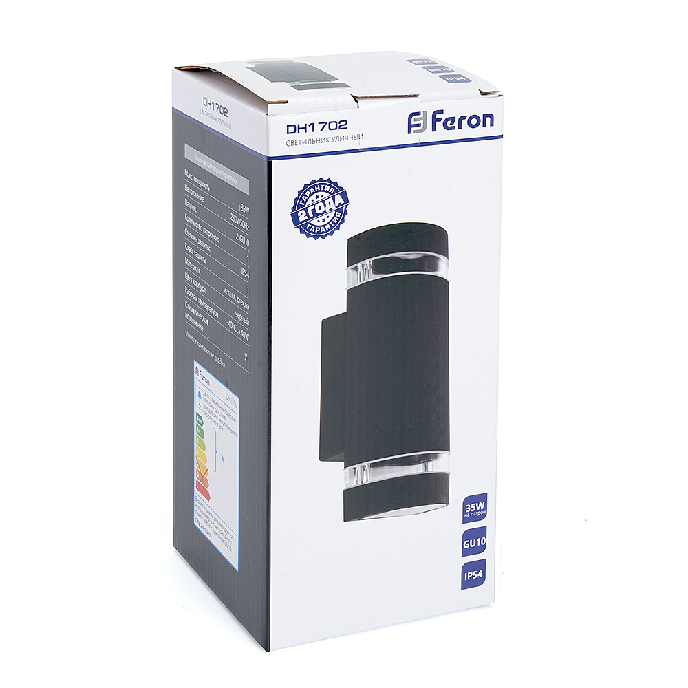 Светильник садово-парковый, серии ?Сеул?, (НБУ) FERON DH1702 2*35W, 2*GU10, 230V, IP54, цвет черный, на стену , 110*105*230мм