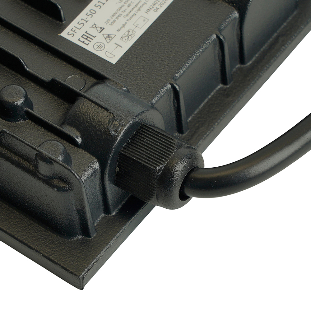 Прожектор светодиодный многоматричный с монтажным креплением на кронштейн, (ДО) SAFFIT SFL51-50, 50W, 6500К (дневной), 220-240V/50Гц, 4000Lm, IP65, угол рассеивания 120градусов, 36*SMD2835, раб.t -40градусовC - +40градусовC, цвет чёрный, корпус алюминий литой под давлением + стекло, 100*83*25 мм