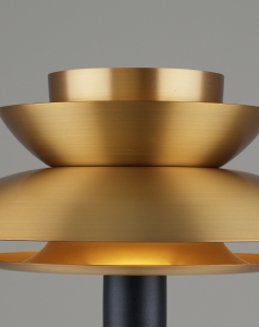 Допускается отличие страны-изготовителя, указанной в характеристиках. Линии производства могут находиться в нескольких государствах. Это не влияет на качество изготовления товара: все заводы данного бренда работают по общим стандартам, а готовые изделия проходят соответствующий контроль.Италия Коллекция Shaggy ЦветЦвет арматуры Черный Цвет Черный Цвет декора черный Цвет плафона золото, латунь РазмерыВысота (мм) 510 Ширина (мм) 300 Глубина (мм) 300 ЭлектрикаКоличество ламп (шт) 1 Цоколь E27 Мощность лампы (Вт) 40 Площадь освещения 3 Дополнительная информацияТип выключателя Выключатель на шнуре Вес (Кг) 1.82 -