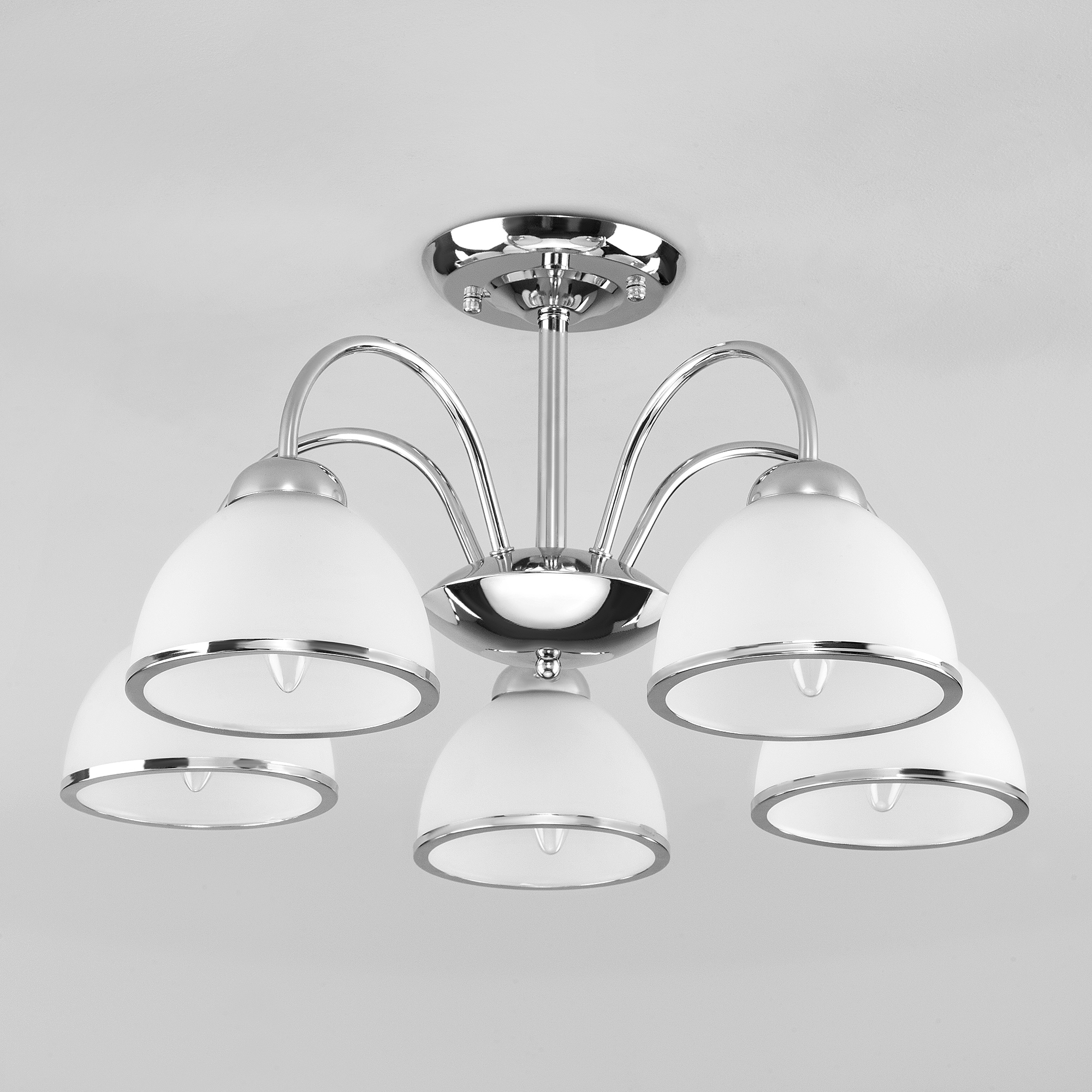 Допускается отличие страны-изготовителя, указанной в характеристиках. Линии производства могут находиться в нескольких государствах. Это не влияет на качество изготовления товара: все заводы данного бренда работают по общим стандартам, а готовые изделия проходят соответствующий контроль.Китай Коллекция Shanon ЦветЦвет арматуры Хром Цвет Хром Материал арматуры Металл Цвет плафона Белый Материал плафона Стекло РазмерыВысота (мм) 300 Длина (мм) 570 Ширина (мм) 570 ЭлектрикаКоличество ламп (шт) 5 Цоколь E27 Мощность лампы (Вт) 40 Напряжение (В) 220 Площадь освещения 13 Дополнительная информацияСпособ крепления Планка Степень защиты (IP) IP20 -