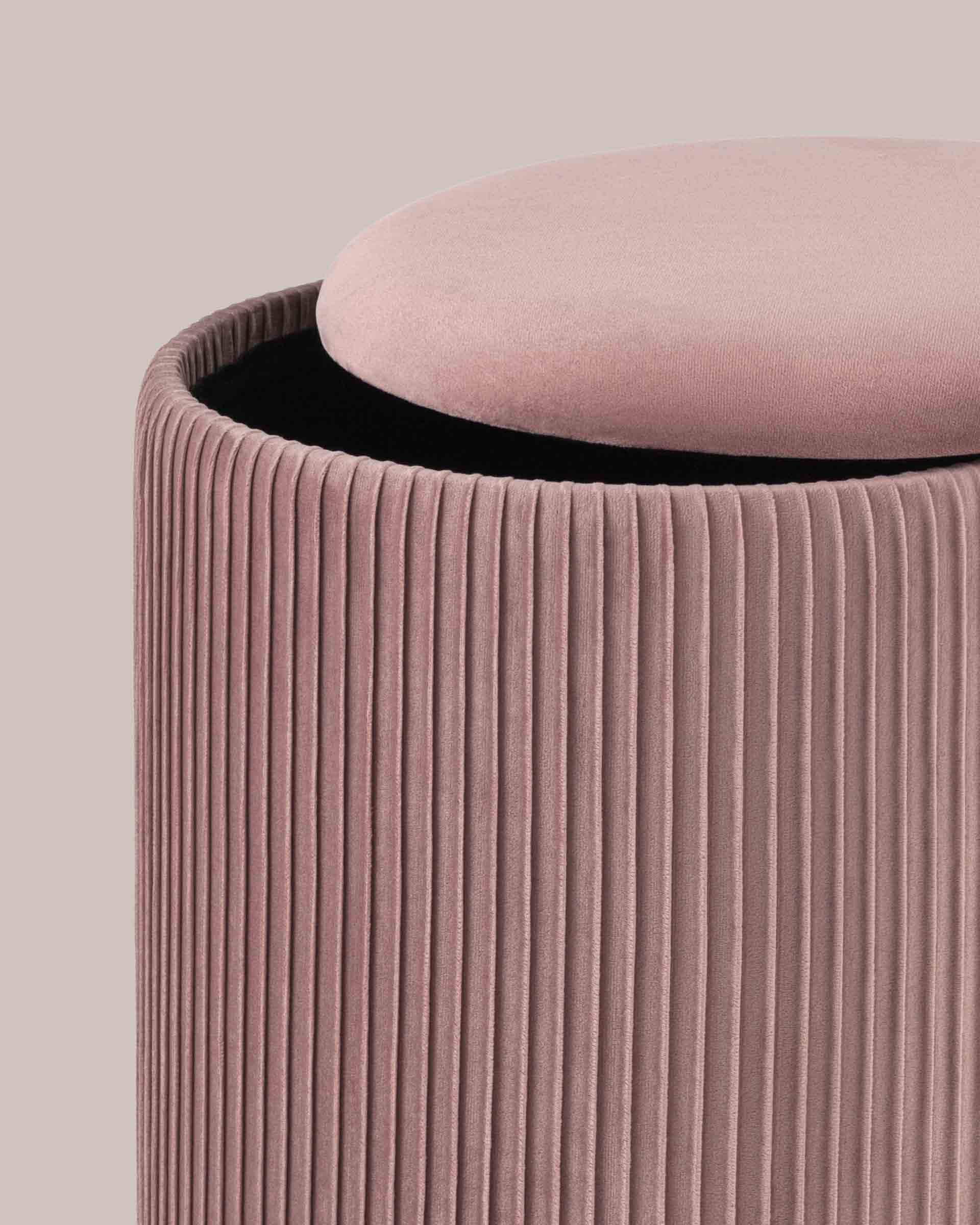 Пуф Шарлотта с ящиком велюр розовый с металлическим основанием в золотом цвете