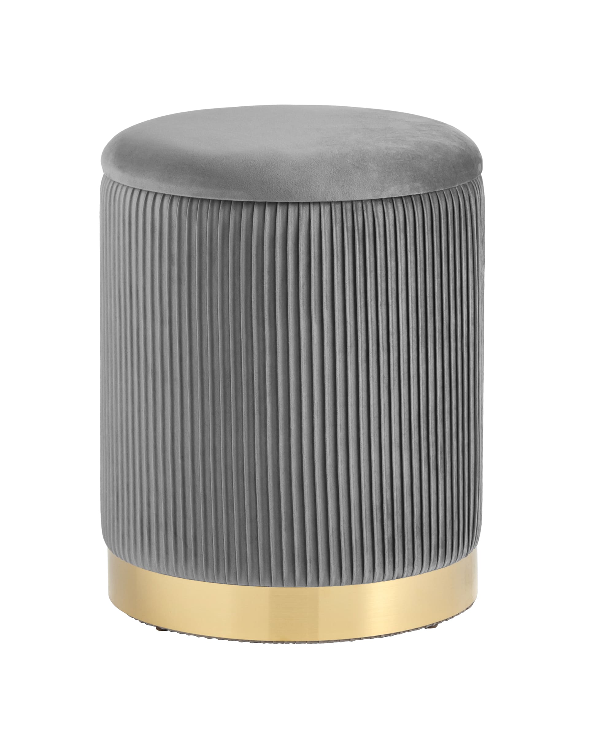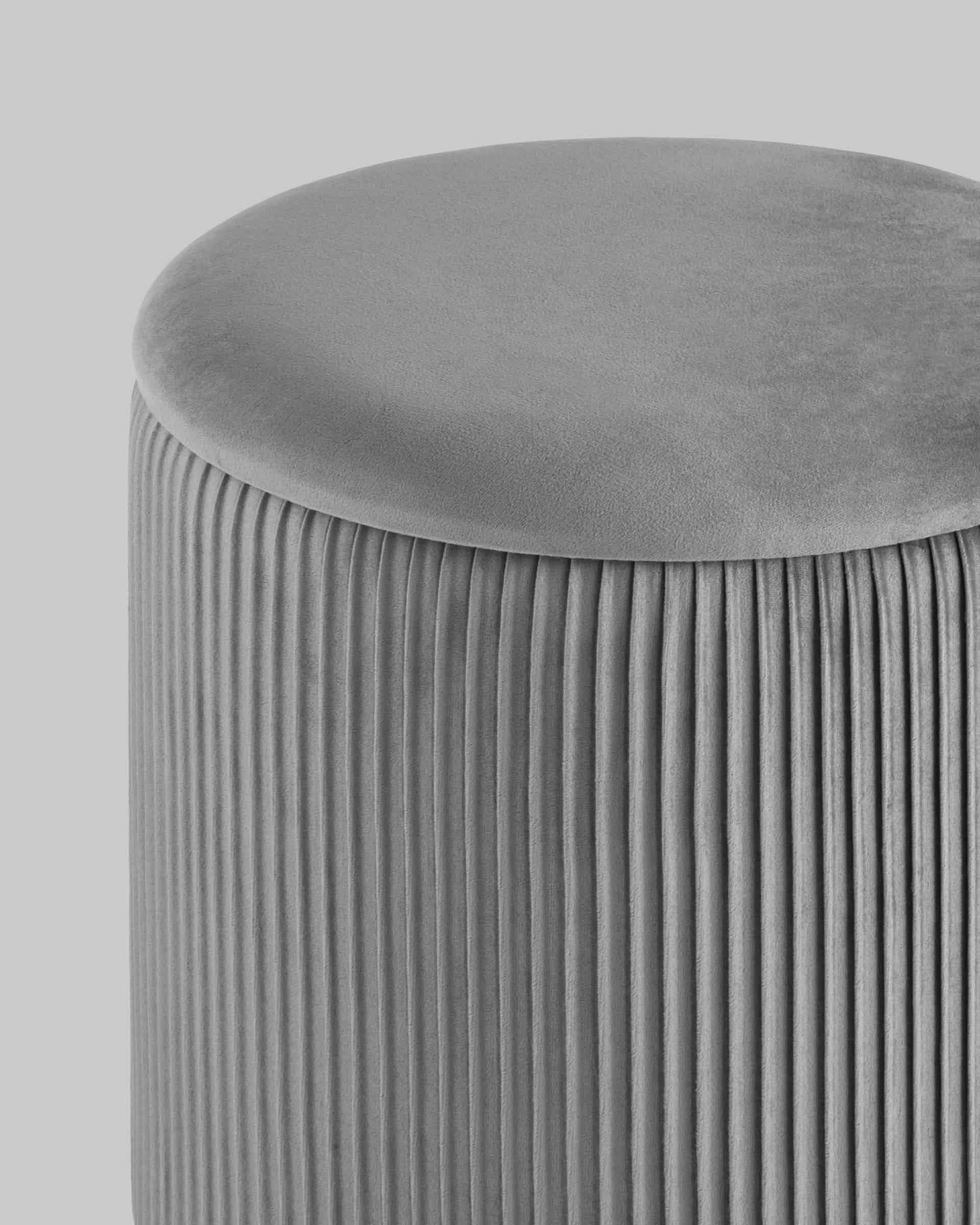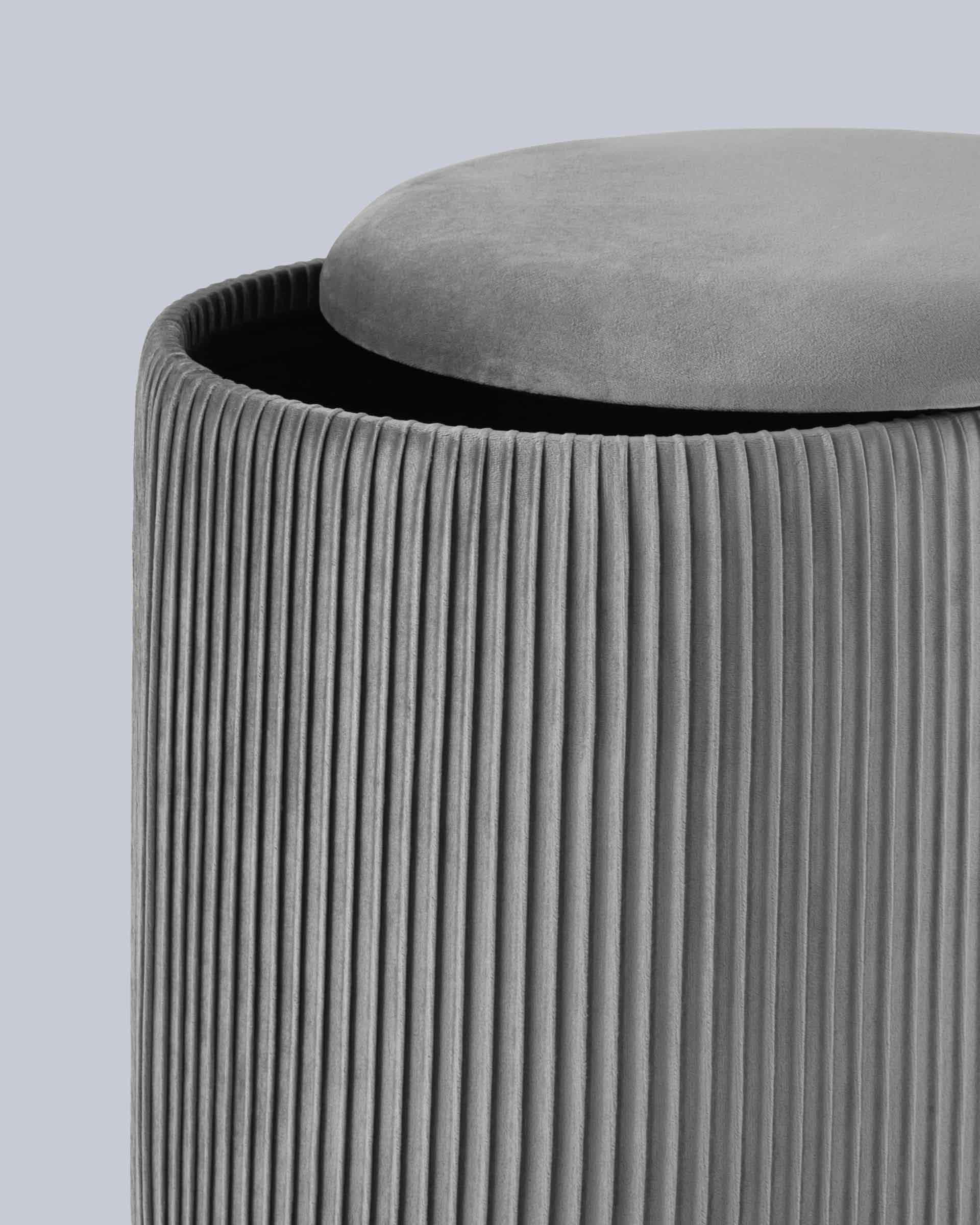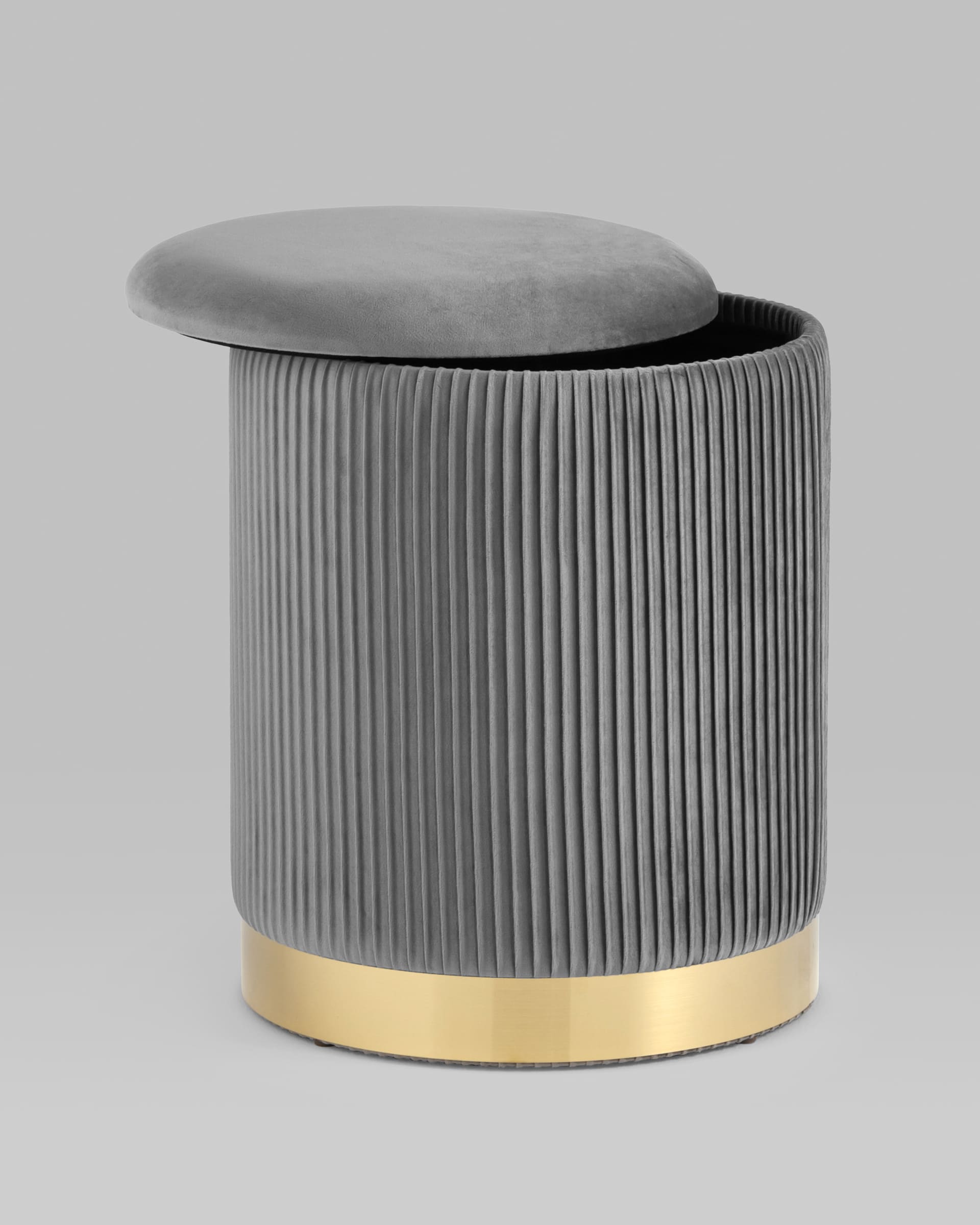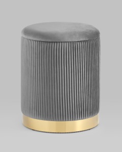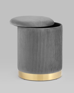 Пуф Шарлотта с ящиком велюр серый с металлическим основанием в золотом цвете
