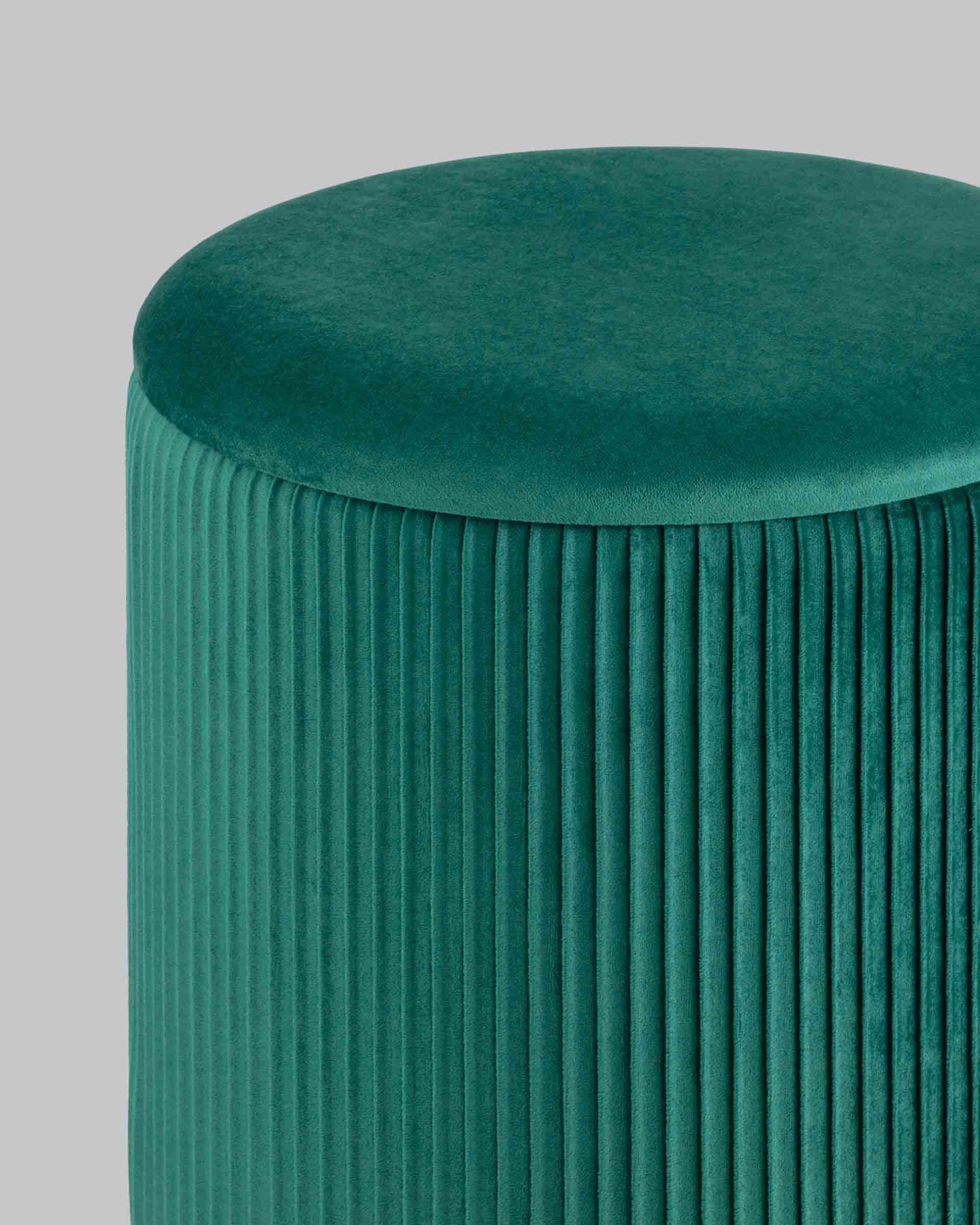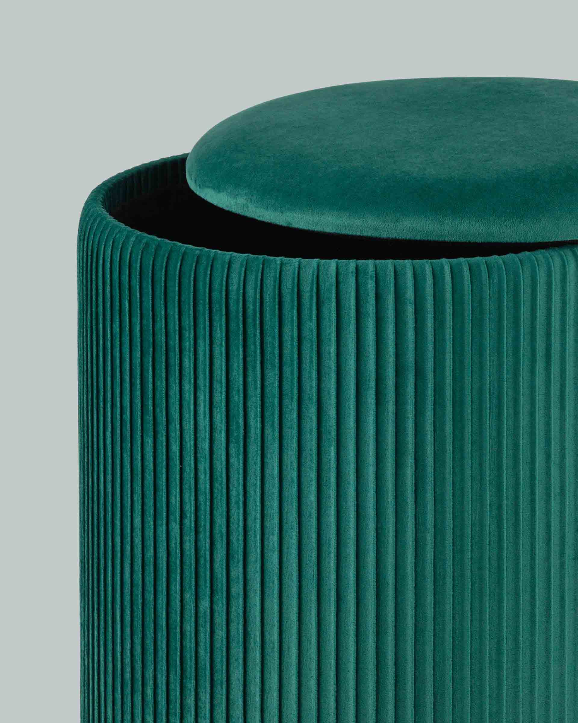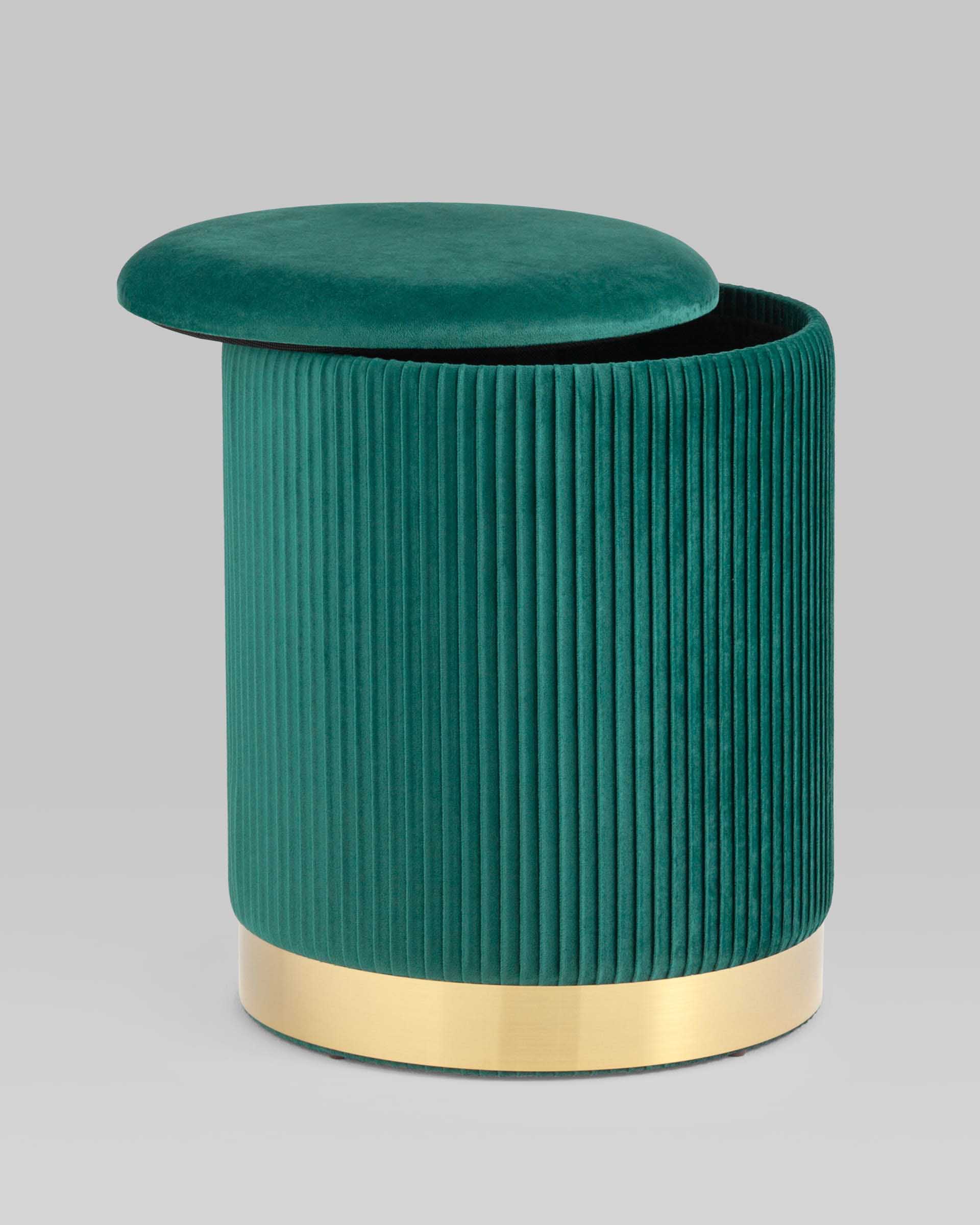 Пуф Шарлотта с ящиком велюр зеленый с металлическим основанием в золотом цвете