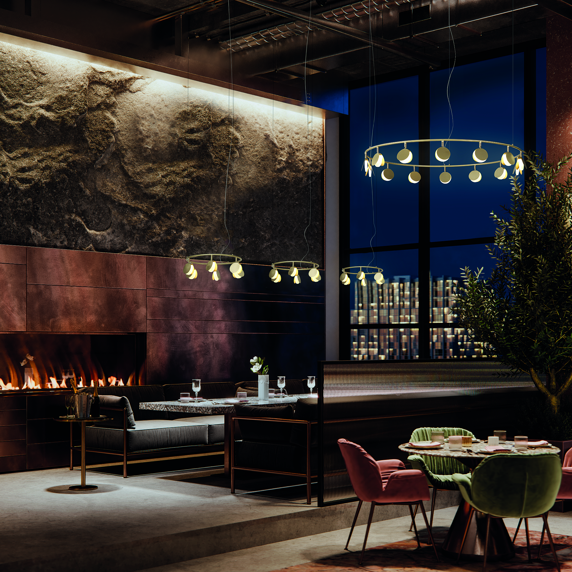 Обаятельная коллекция подвесных светильников SHELL была спроектирована российским дизайнером, Полиной Кузурман. SHELL является крайне изящной коллекцией. Она несет в себе образы вдохновения дизайнера, напоминая форму раскрывающихся ракушек или порхание стаи мотыльков. Тонкие золотые пластины распахнулись, чтобы выпустить мягкий светодиодный свет из основания формы. Множество маленьких ракушек закреплено на широком обруче. Он словно парит в воздухе, благодаря едва заметной системе подвески. Коллекция выполнена в золотой отделке и доступна в нескольких размерах. Разные системы подвесок позволяют адаптировать светильник под задачи вашего интерьера. Самая большая трехъярусная композиция коллекции представляет собой три кольца разного диаметра с разным количеством светодиодов на каждом ярусе. SHELL несомненно поддержит атмосферу комфорта и релакса в пространстве ресторана или отеля. Эта легкая и чувственная коллекция также отлично впишется в домашний интерьер гостиной или столовой.