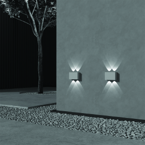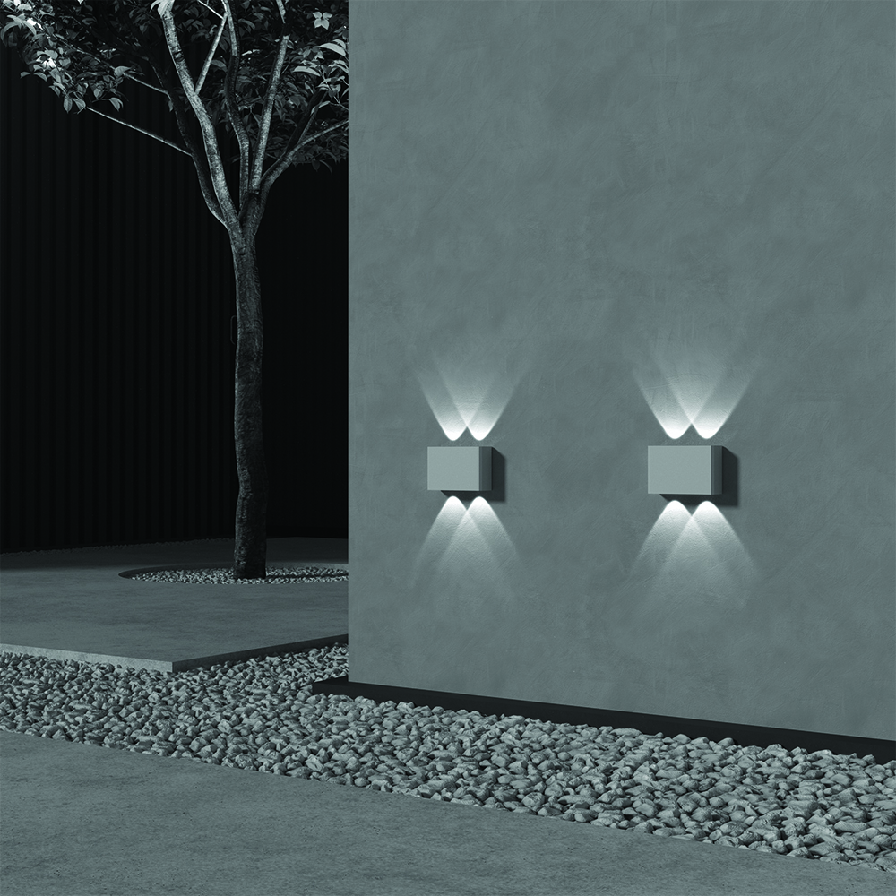 Материал корпуса - алюминий, цвета - графит, белый. Два луча света из верхней и нижней поверхности светильника. Идеальны для составления эффектных световых рисунков. LED-истоничк света - IP54.