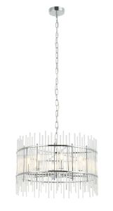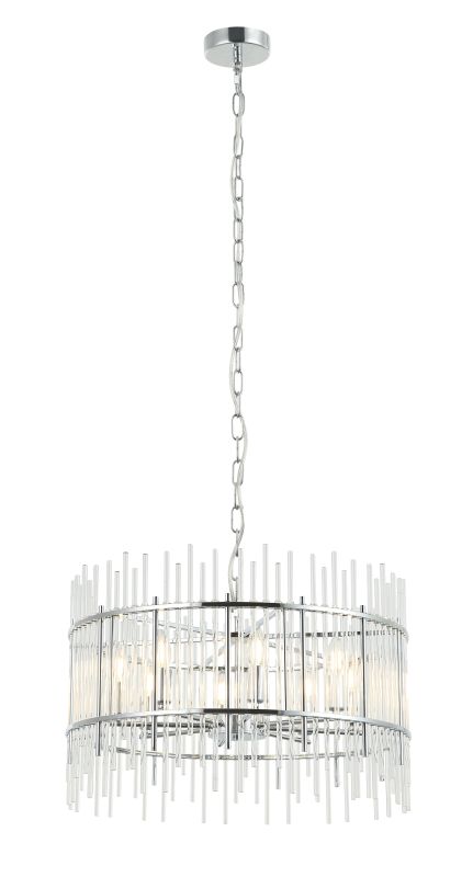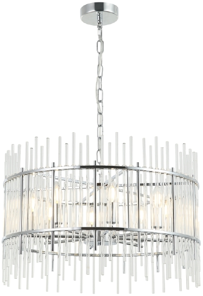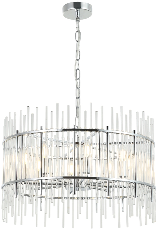 Люстра подвесная из коллекции Sia выполнена из металла, гальванизированного в цвет хрома, и декорирована прозрачными стеклянными трубочками. Каркас люстры отделан металлическими кантами и дополнительно закрепленными металлическими стержнями, гальванизированными в цвет арматуры. Премиальное качество и неповторимыи? дизаи?н светильников идеально подои?дут как в классические, так и современные дизайнерские интерьеры.