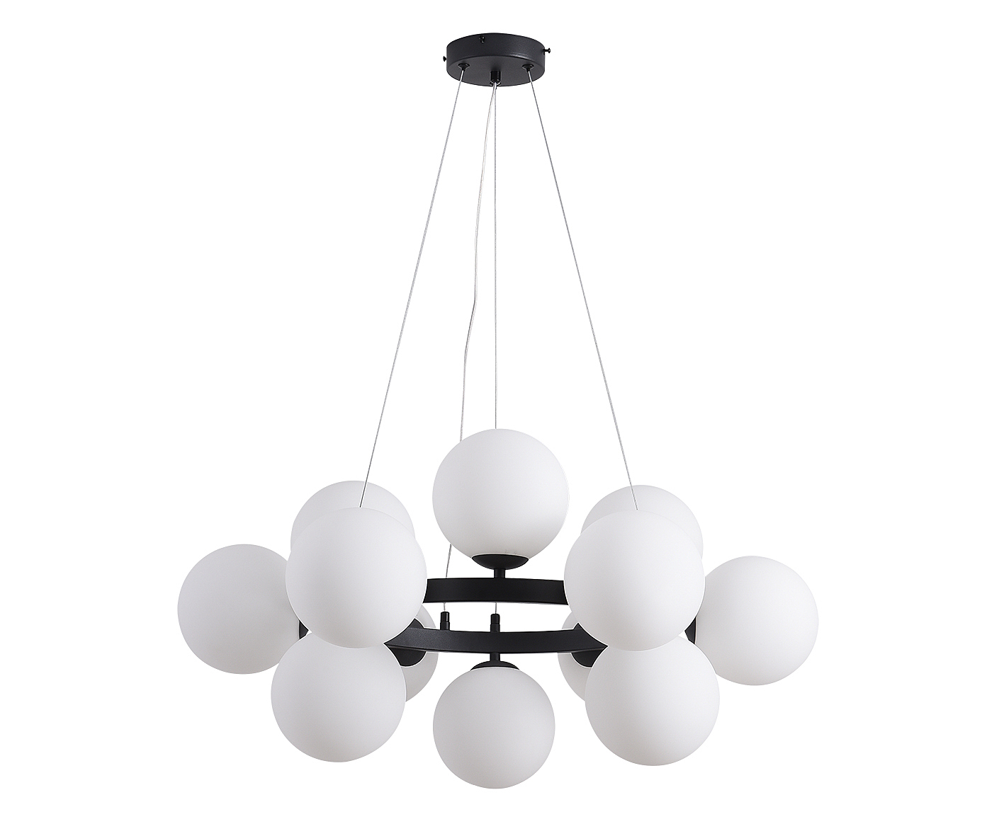 Допускается отличие страны-изготовителя, указанной в характеристиках. Линии производства могут находиться в нескольких государствах. Это не влияет на качество изготовления товара: все заводы данного бренда работают по общим стандартам, а готовые изделия проходят соответствующий контроль.Китай Коллекция Сида ЦветЦвет арматуры Черный Цвет Черный Материал арматуры Металл Цвет плафона Белый Материал плафона Стекло РазмерыВысота (мм) 1200 Диаметр (мм) 730 Ширина (мм) 730 ЭлектрикаКоличество ламп (шт) 12 Цоколь E14 Тип лампы Накаливания Мощность лампы (Вт) 40 Общая мощность (Вт) 480 Площадь освещения 11 Дополнительная информацияСтепень защиты (IP) IP20 Место установки на потолок Тип подвеса На тросах -