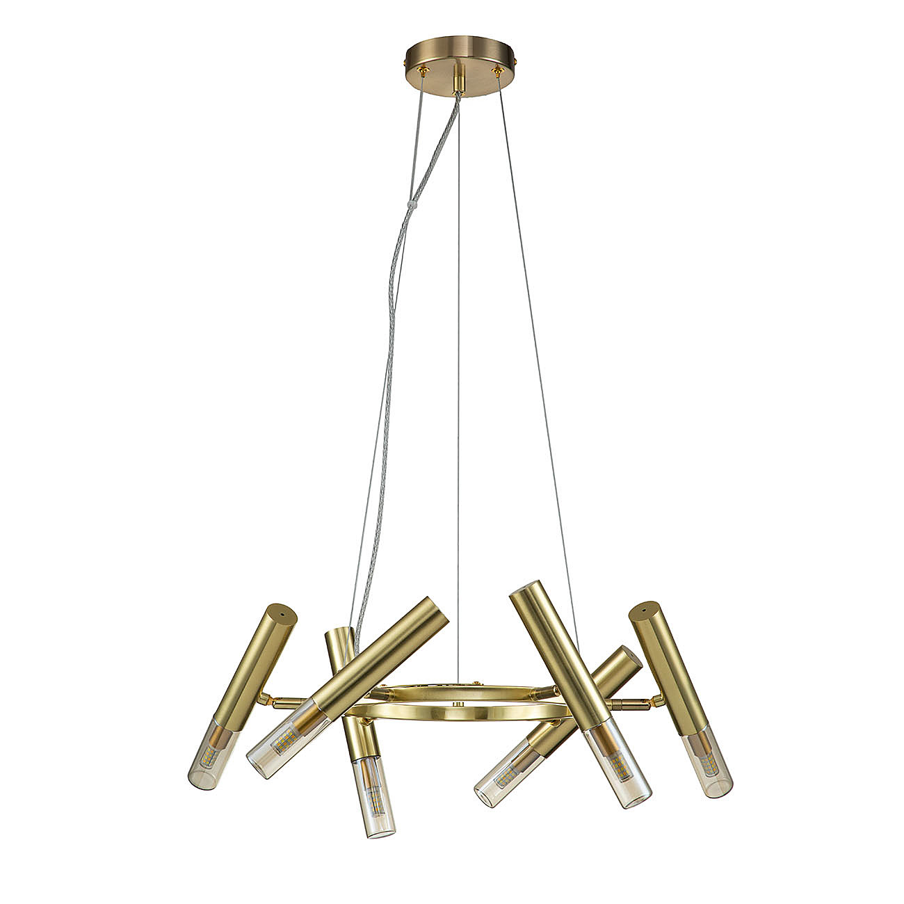Умелый курительный ритуал придает особый шик и респектабельность, становясь настоящим символом успеха. Элегантная коллекция SIGARO это свет в аристократическом обрамлении. Поворотные плафоны в форме цилиндров регулируются и каждый раз создают новый световой сценарий, добавляя презентабельности в классическую обстановку заведения или частного дома Размер 480*480*255/1365 МощностьG9 6xMAX 28W ЦветЗОЛОТОЙ Материал МЕТАЛЛ