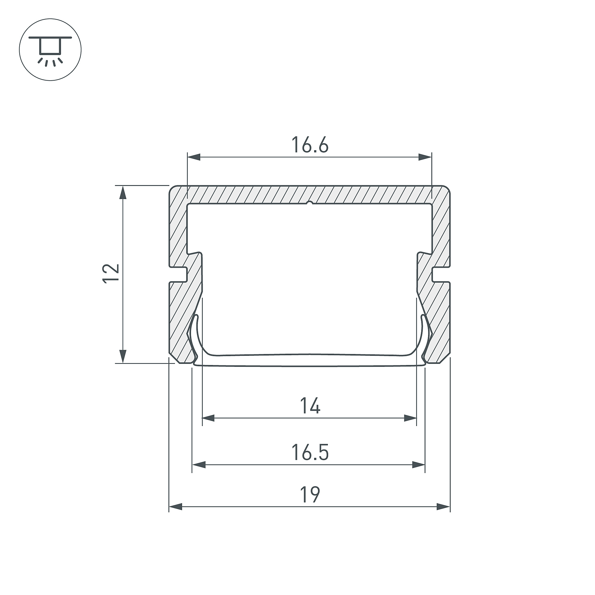 Алюминиевый профиль для герметичных лент в оболочке, серии 5000PFS, 5000PS и другие.Расширенная площадка для лент в оболочке до 15мм. Габаритные размеры (L×W×H): 2000x19x12 мм. Ширина площадки для ленты 16 мм. Экраны, заглушки и другие аксессуары приобретаются отдельно. Цена за 1 метр.