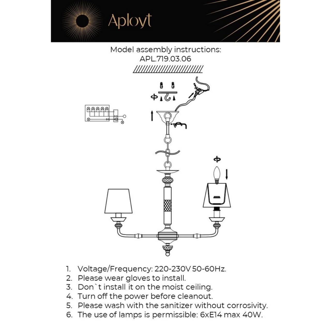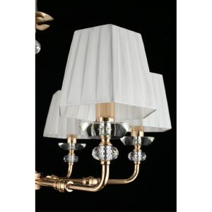 Допускается отличие страны-изготовителя, указанной в характеристиках. Линии производства могут находиться в нескольких государствах. Это не влияет на качество изготовления товара: все заводы данного бренда работают по общим стандартам, а готовые изделия проходят соответствующий контроль.Польша Коллекция Silvian ЦветЦвет арматуры Золото Цвет Золото Материал арматуры Металл Цвет декора прозрачный Цвет плафона Белый Материал декора Хрусталь Материал плафона Ткань РазмерыВысота (мм) 1400 Диаметр (мм) 700 Высота минимальная (мм) 700 Ширина (мм) 700 ЭлектрикаКоличество ламп (шт) 6 Цоколь E14 Лампочки в комплекте Нет в комплекте Мощность лампы (Вт) 40 Общая мощность (Вт) 240 Световой поток 2520 Дополнительная информацияСпособ крепления Планка Степень защиты (IP) IP20 Вес (Кг) 5 Тип подвеса На цепи -